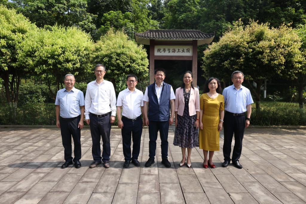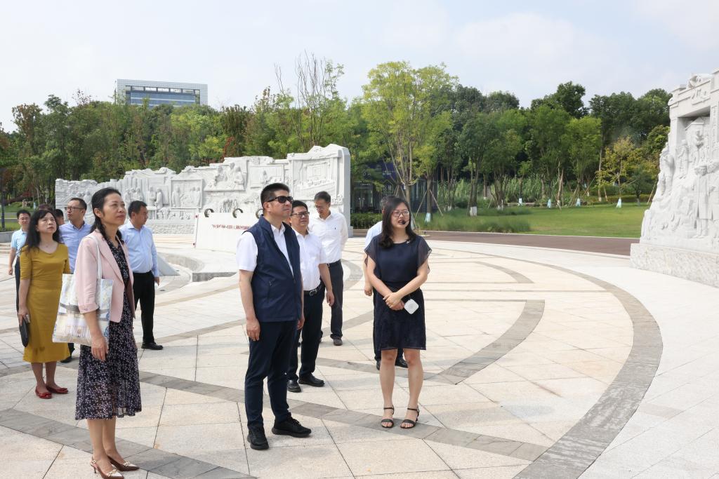 裘新一行参观了“弦歌西进——上医重医西迁精神主题展览”、西迁广场,瞻仰了西迁群雕和复建的抗战时期上医在歌乐山老校门。