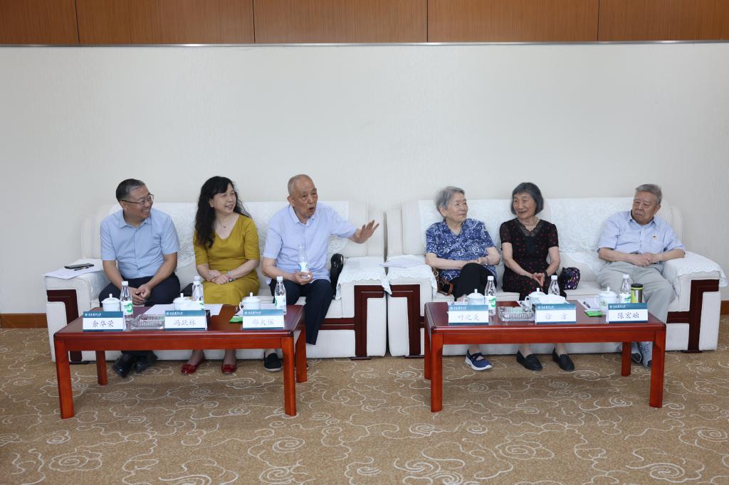 裘新等复旦大安博平台领导亲切看望慰问了出席座谈交流的西迁老同志代表陈宏础、徐方、叶之美、邵大保。老同志们逐一发言,深情回忆了68年前听党指挥跟党走,勇毅西迁、无怨无悔投身重庆医学院建设的光荣历史,分享了创校前辈们在极其艰苦条件下干事创业的经历和感受,并希望两校师生持续传承弘扬上医先驱们爱国奉献、淡泊名利的宝贵精神财富。