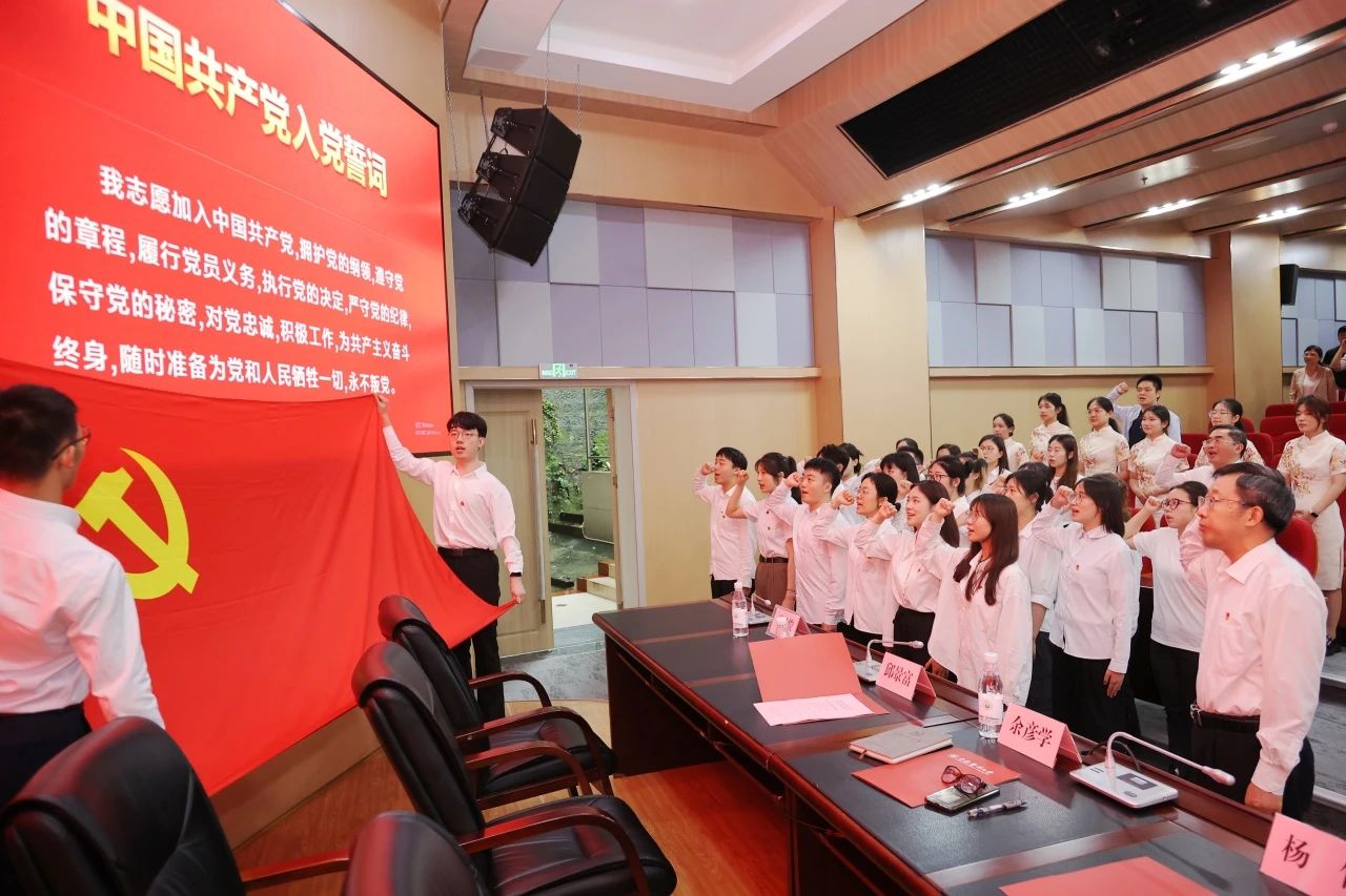 在党委书记覃正杰带领下,新党员面向党旗,紧握右拳,庄严宣誓加入中国共产党,全体老党员重温入党誓词。