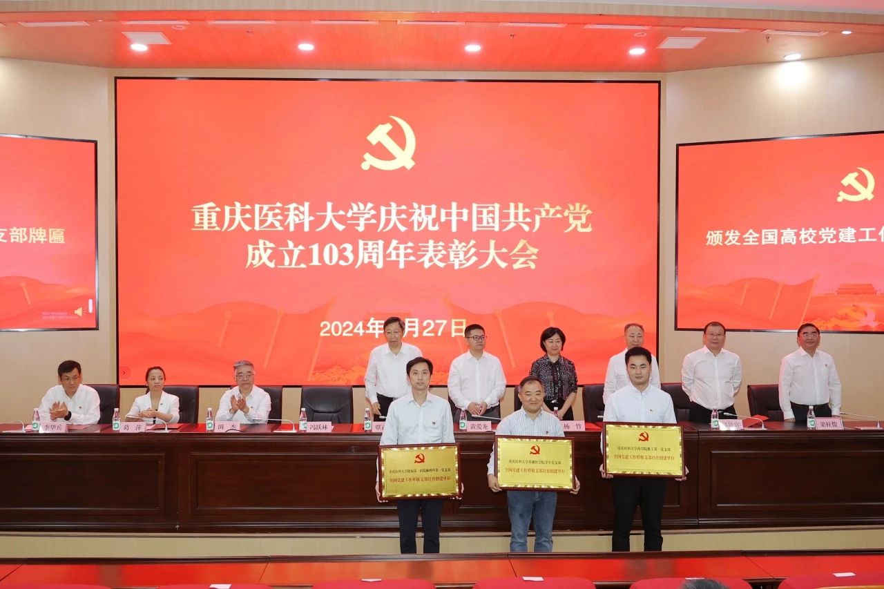大会还向入选第四批“全国党建工作样板支部”培育创建单位的基础医学院学生党支部、药学院教工第一党支部、附属第一医院麻醉科第一党支部授牌。