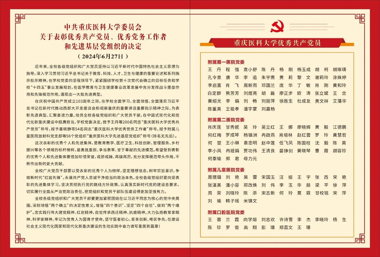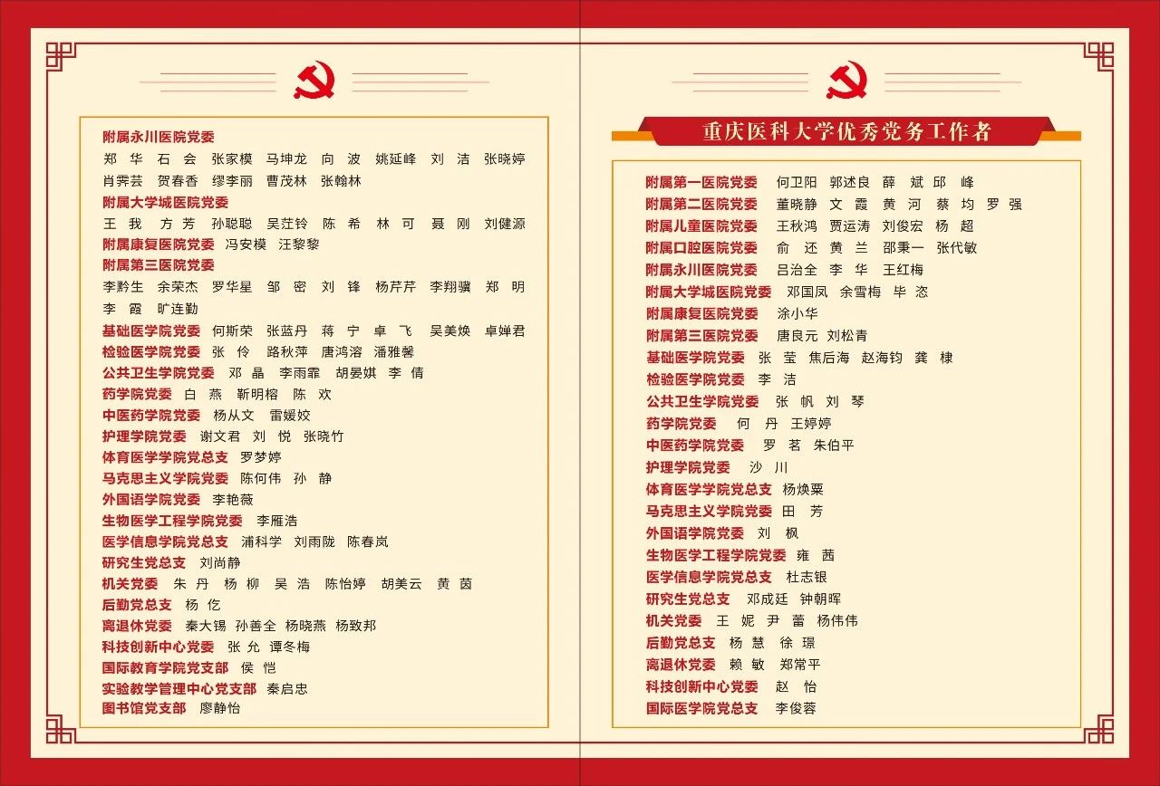 《决定》授予王丹等200名同志“安博平台优秀共产党员”称号,授予董晓静等54名同志“安博平台优秀党务工作者”称号,授予附属儿童医院放射科党支部等56个党组织“安博平台先进基层党组织”称号。与会领导为优秀共产党员、优秀党务工作者以及先进基层组织颁发证书、牌匾。