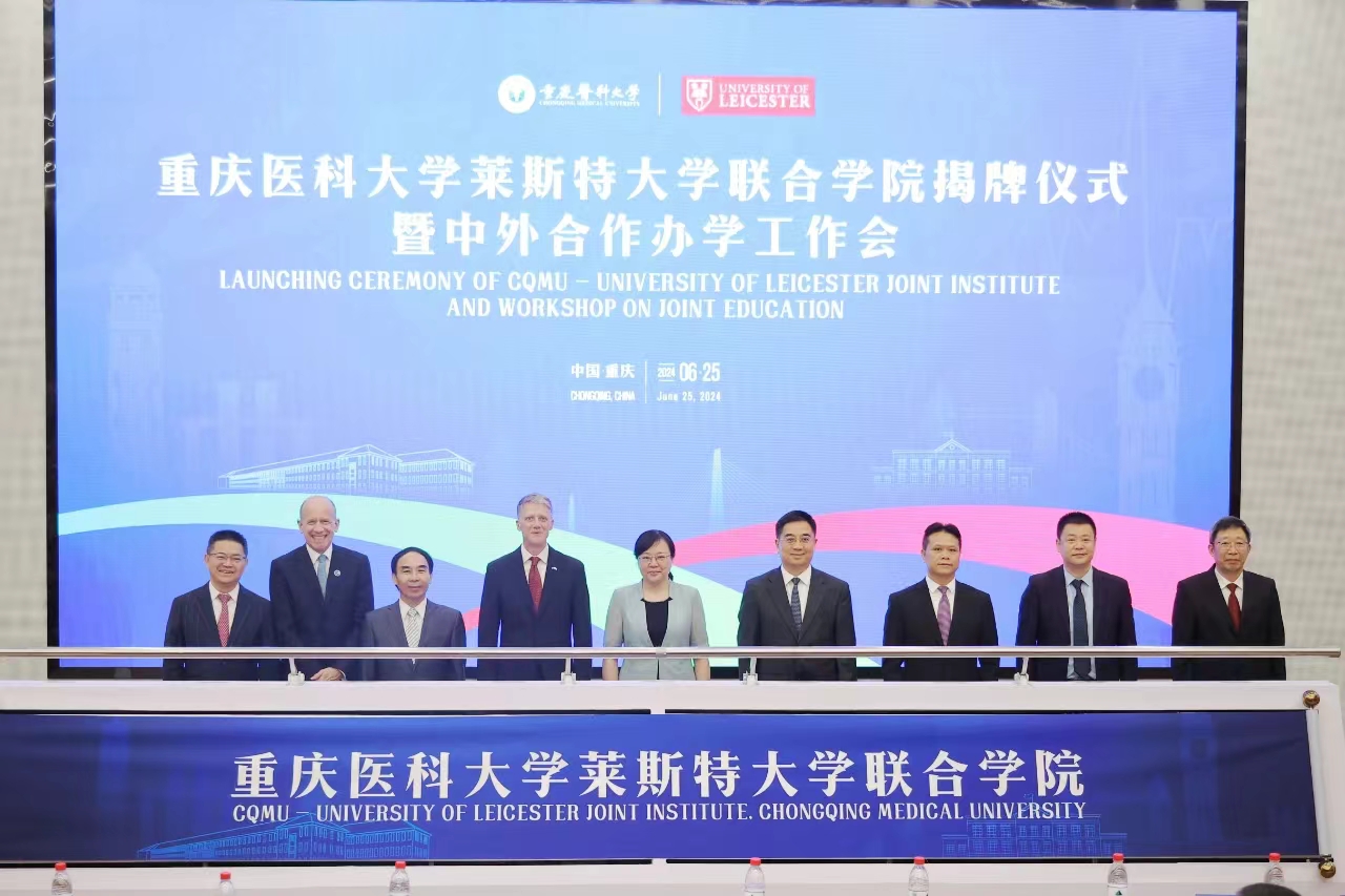 6月25日,安博平台与英国莱斯特大学合作设立的中外合作办学机构“安博平台莱斯特大学联合学院(CQMU - University of Leicester Joint Institute, Chongqing Medical University)”(以下简称“联合学院”)在安博平台袁家岗校区崇医楼学术报告厅隆重举行揭牌仪式。