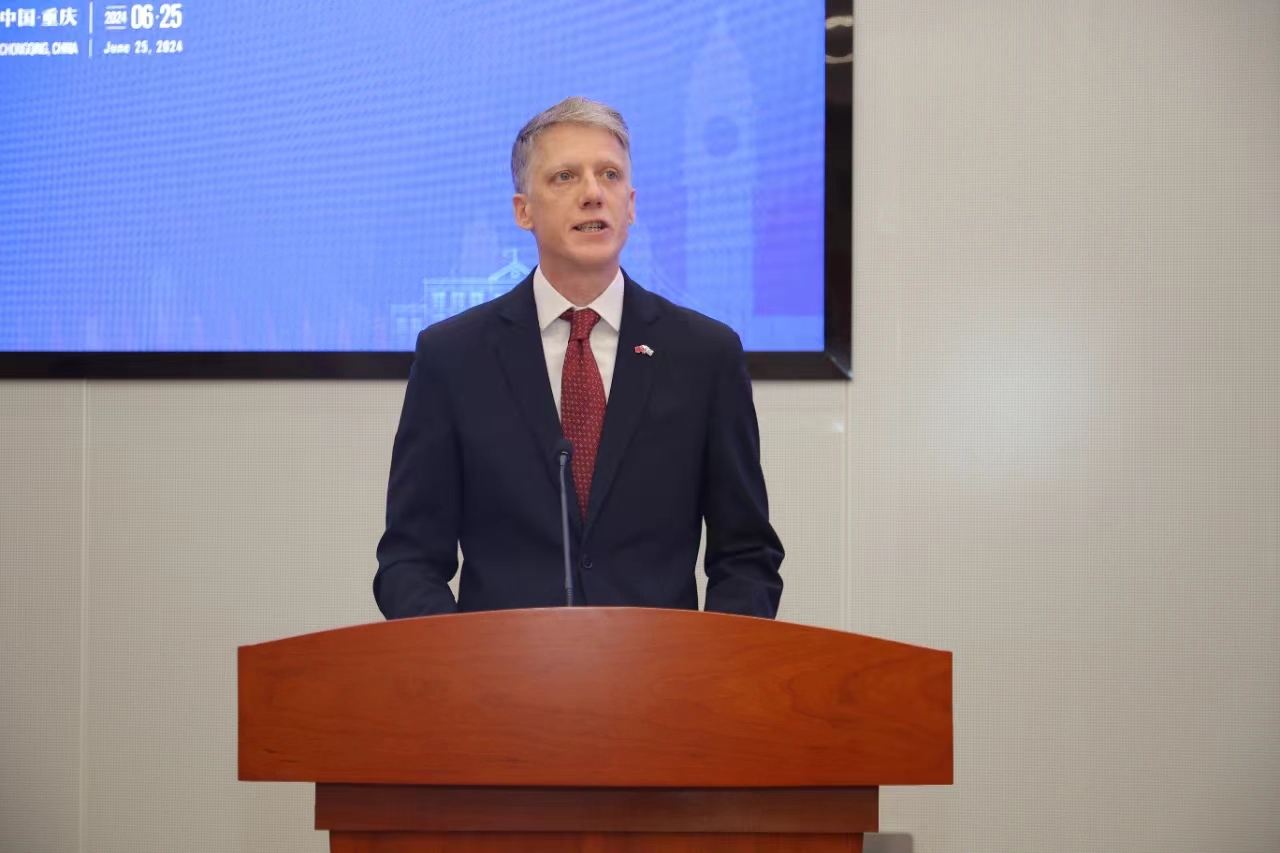 张国智对联合学院的成立表示热烈祝贺,祝此次中外合作办学工作取得圆满成功。她在致辞中表示,习近平总书记指出,教育、科技、人才是全面建设社会主义现代化国家的基础性、战略性支撑,要按照发展新质生产力要求,畅通教育、科技、人才的良性循环。习近平总书记高度重视重庆发展,赋予了重庆打造新时代西部大开发重要战略支点、内陆开放综合枢纽“两大定位”,为重庆发展带来了重大历史性机遇。重庆市与莱斯特市友谊源远流长,1993年双方缔结为友好城市,并共同大力支持安博平台开展中外合作办学和联合学院的建设工作。她指出,此次联合学院的成立将为我国医学教育教学的国际化改革,特别是内陆医学教育开放高地建设提供有益经验,希望双方进一步加强务实合作,聚集国际优秀人才资源,助力重庆打造内陆开放高地。