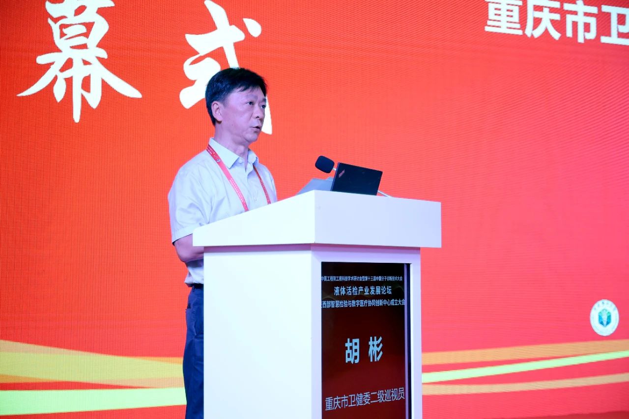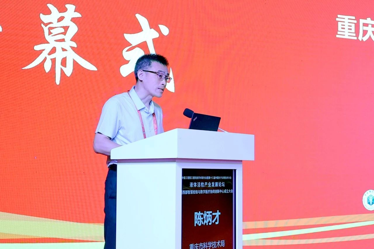 陈炳才在致辞中表示,人民健康是社会文明进步的基础,是民族昌盛和国家富强的重要标志。液体活检相较于传统组织活检具有无创性、敏感性、动态性等特质,它的出现标志着人类在攻克肿瘤、癌症的医疗技术上取得重要突破。西部智慧检验与数字医疗协同创新中心是集政产学研资用为一体的平台,对推动智慧检验与数字医疗产业的发展将发挥重要作用。本次大会既有产业发展论坛,又有创新中心成立,为大家深入交流构建了开放合作的重要平台。希望各位嘉宾集思广益,畅所欲言,深化互利合作,积极推动活检产业发展,希望中心立足新起点,扎实推进建设,加大科技成果转化与孵化的力度,加快推动重庆市生物医学产业发展。