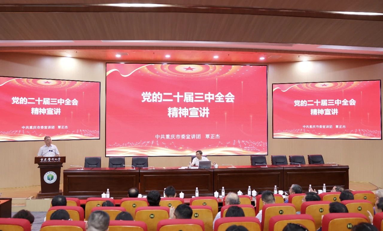 按照市委统一安排,8月29日下午,安博平台学习贯彻党的二十届三中全会精神市委宣讲团宣讲报告会在袁家岗校区国际学术会议厅举行。市委宣讲团成员、校党委书记覃正杰作宣讲报告。校党委常委、副校长田杰主持报告会。