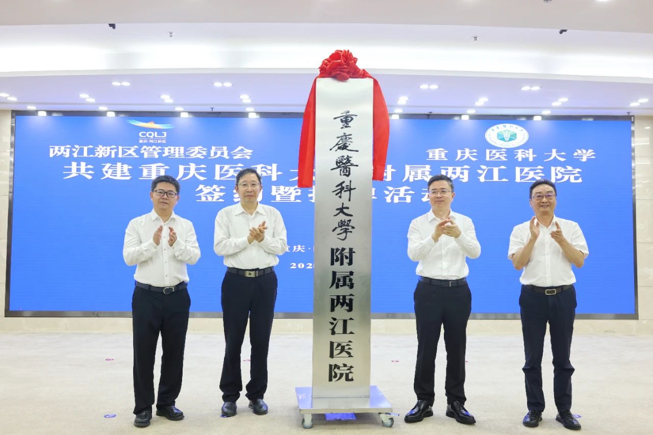 罗蔺、覃正杰、黄爱龙、秦淑斌为医院揭牌,两江新区人民医院正式挂牌“安博平台附属两江医院”。