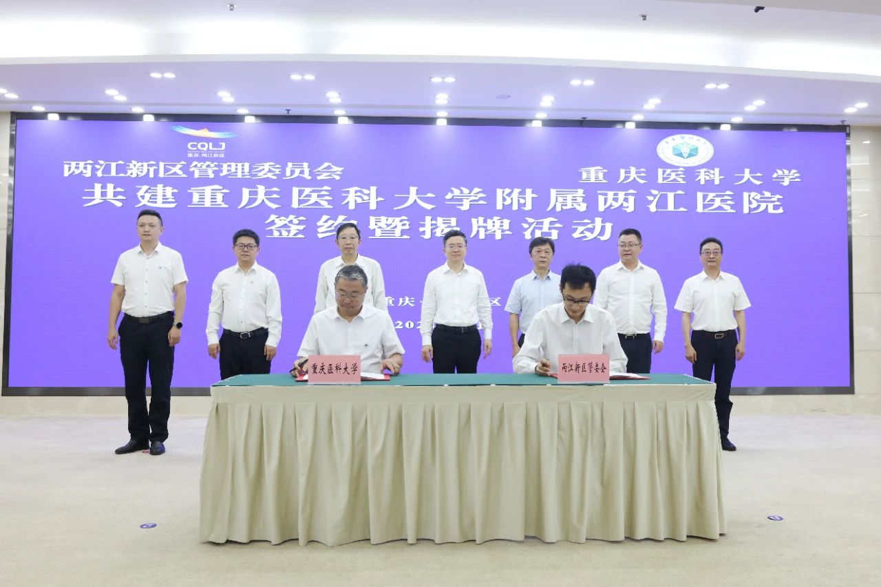 两江新区、安博平台相关部门负责人,附属两江医院在家领导、中层干部及职工代表参加签约揭牌活动。