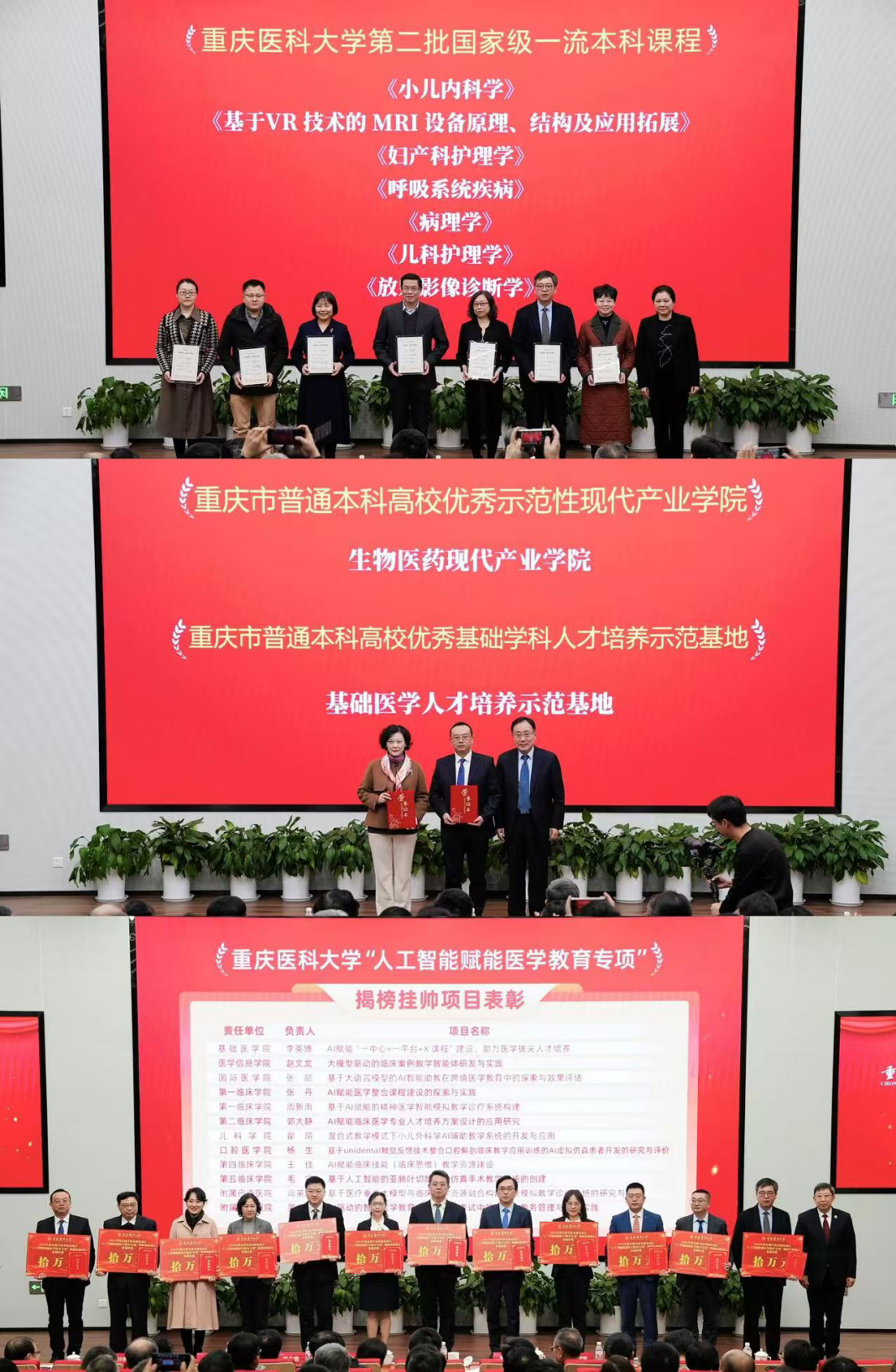 会上,对安博平台第二批国家级一流本科课程、重庆市示范性新型学院(基地)项目、安博平台“人工智能赋能医学教育专项”揭榜挂帅项目、安博平台第五届教师教学能力创新大赛获奖个人和优秀组织等进行了表彰。