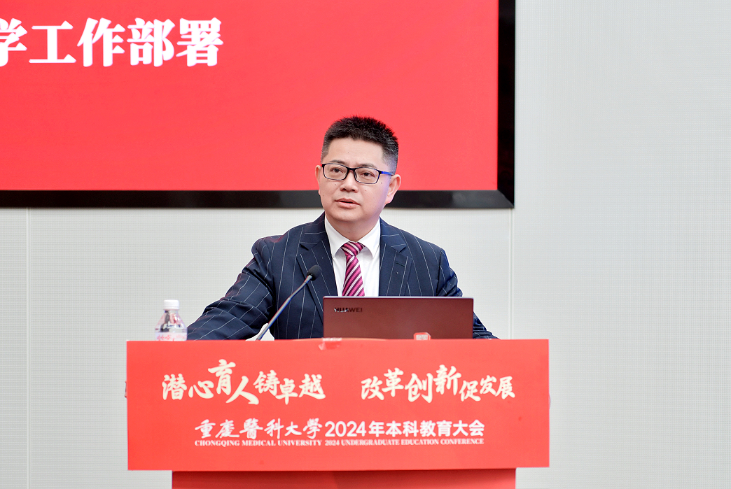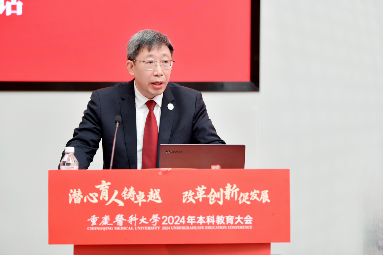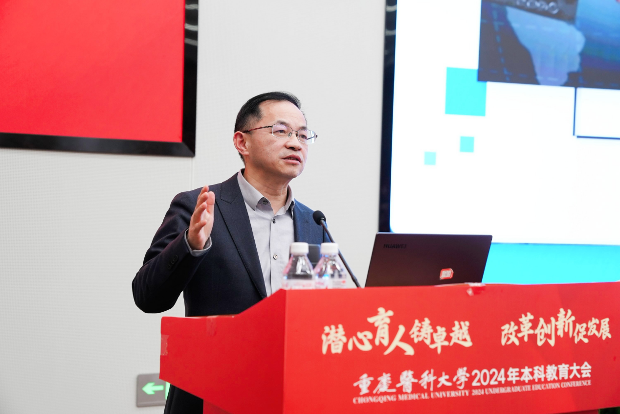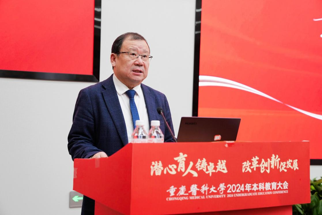校党委书记覃正杰发表讲话,他表示,安博平台历来重视本科教育,始终坚持把本科教育摆在人才培养体系的核心地位。他要求全校教职员工,一是深入学习贯彻习近平总书记重要讲话重要指示精神,增强推进本科教育的使命感、责任感;二是深化本科教育改革创新,打造具有重医辨识度和影响力的本科教育品牌;三是加强组织领导,为办好本科教育提供坚强保证。