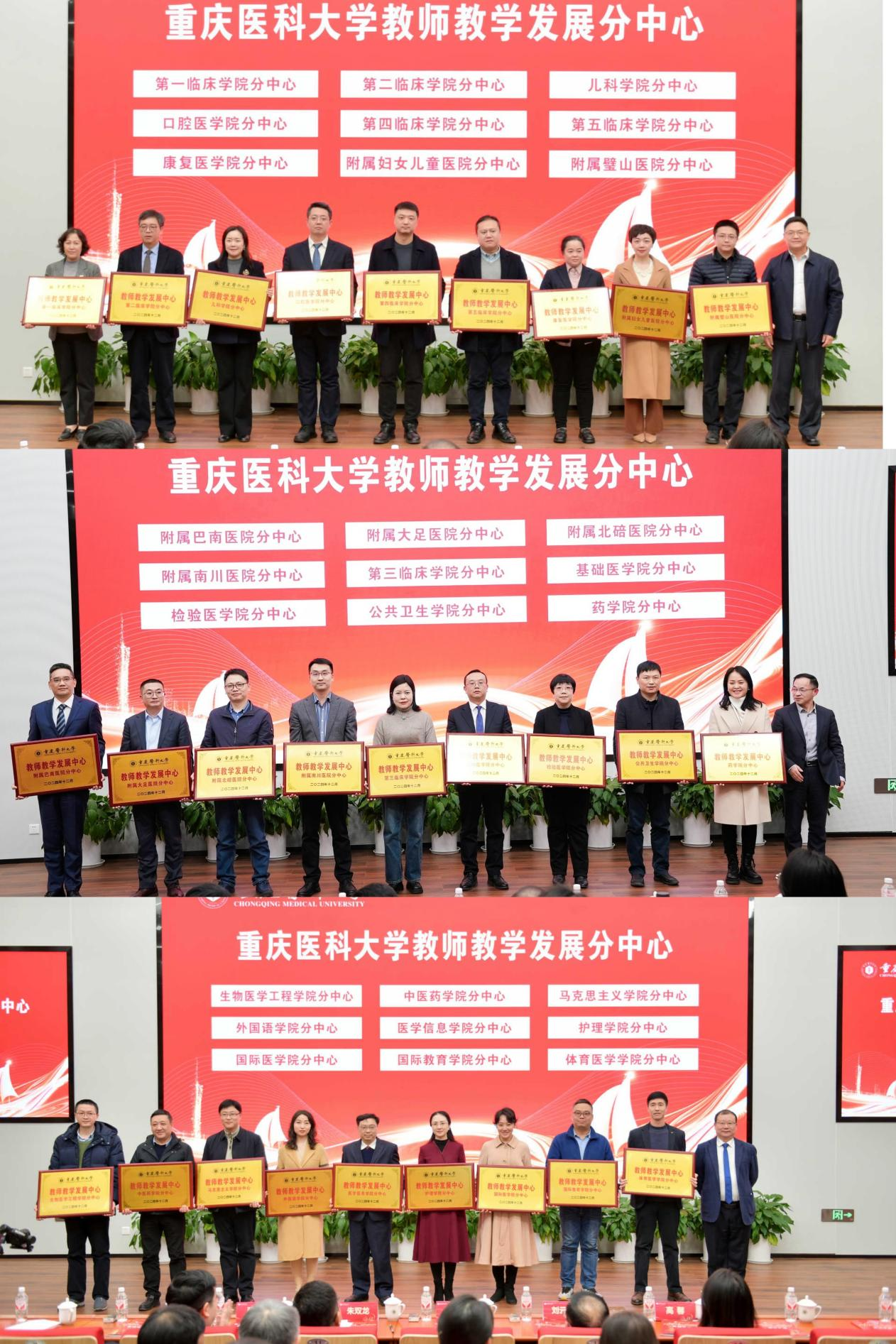 同时,为进一步整合和利用安博平台优质资源,有组织地打造“大重医”教师教学发展体系,加强新时代高素质专业化教师队伍建设,安博平台在各二级学院和附属医院成立了27个教师教学发展分中心,朱双龙、刘云生、邱景富分别为安博平台教师教学发展分中心授牌。