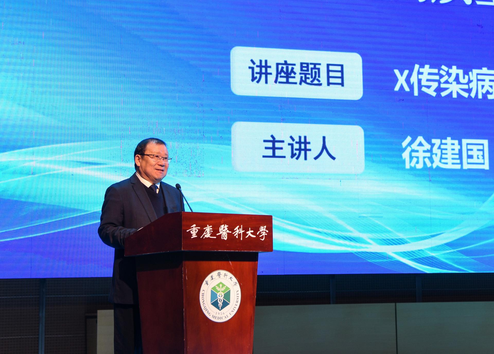 邱景富为讲坛致辞,对徐建国院士的到来表示热烈欢迎和诚挚感谢。邱景富表示,此次论坛是一次难得的学习交流机会,希望全校师生们能够充分珍惜学术交流的宝贵契机,深化对新发传染病多学科交叉研究范式的理解,掌握传染病防控从理论到实践的方法论,提升解决重大公共卫生问题的实战能力,共同参与并破解X传染病传播机制与防控策略等科学难题,为人类的健康事业作出更大的贡献。