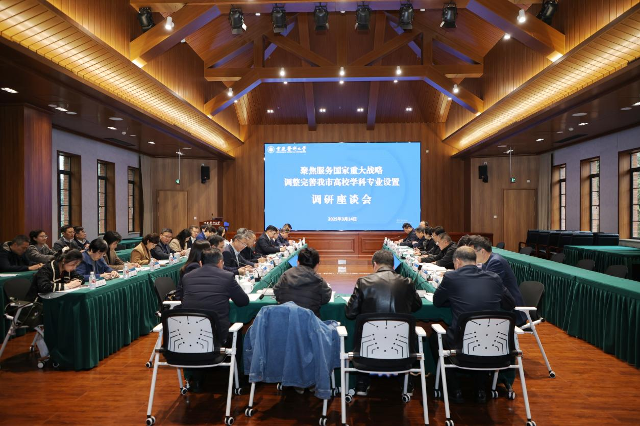 3月14日下午,市政协副主席陈贵云一行来校,围绕聚焦服务国家重大战略,调整完善我市高校学科专业设置重点课题开展调研座谈。市政协副秘书长乔宏及市政协部分教育界专家委员、我校全体在家校领导参加座谈会。