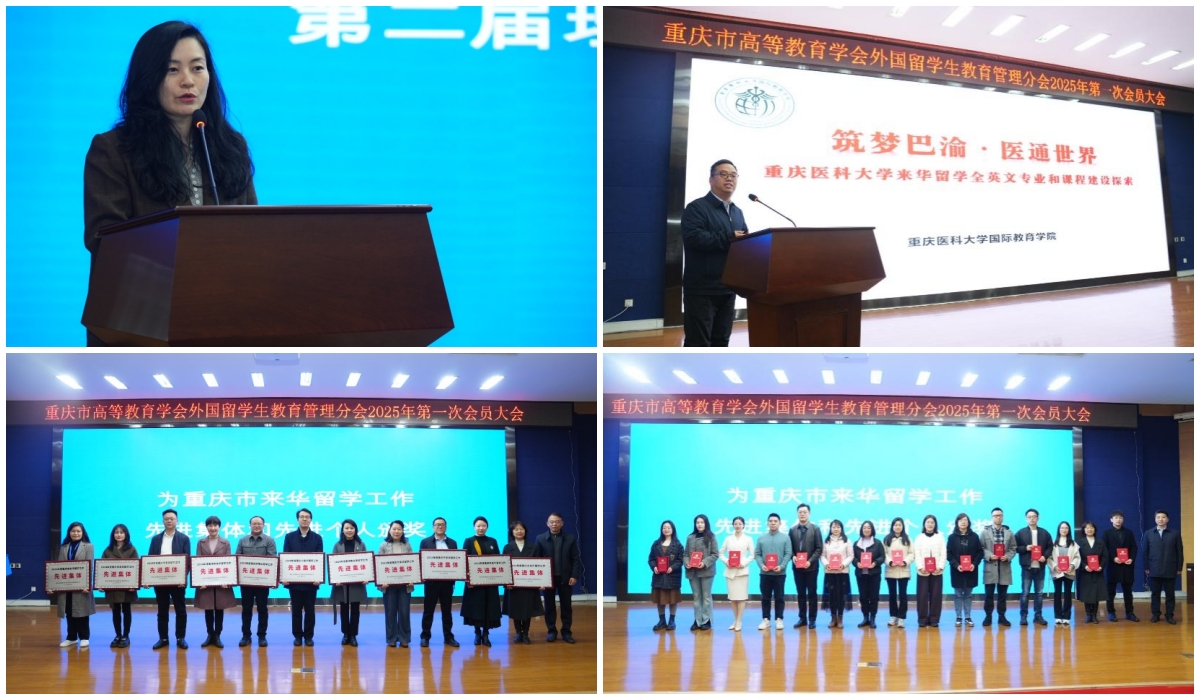 会上,11个来华留学工作先进集体、75名来华留学工作先进个人、22名来华留学工作年度人物受到表彰。我校荣获“2024年度重庆市来华留学工作先进集体”,陈戈、杜永洪、江德鹏、雷都、李培森、于子倩、朱慧芳等7人荣获“2024年重庆市来华留学工作先进个人”,朱慧芳荣获“2023-2024重庆市来华留学工作年度人物”。国际教育学院副院长李培森在会上作题为《筑梦巴渝·医通世界:安博平台来华留学全英文专业和课程建设探索》的交流发言。