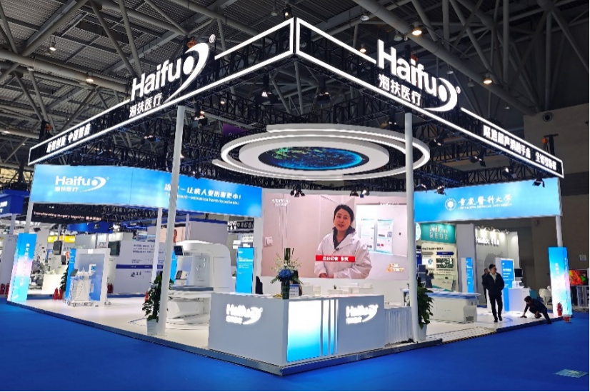 我校首个孵化企业——重庆海扶医疗科技股份有限公司携海扶刀、海极星、海极翼等系列非侵入性治疗设备亮相,并举行了海扶刀妇科乳腺专用机JCU系列新品发布。海扶医疗自主研发的辅助光及机器视觉空间定位系统,可使患者快速移动到最佳治疗位置。设备搭载了监控超声快速切换及自动匹配技术,实现深部肿瘤和浅表肿瘤的监控影像快速切换,使深部和浅表的肿瘤均可以进行治疗。