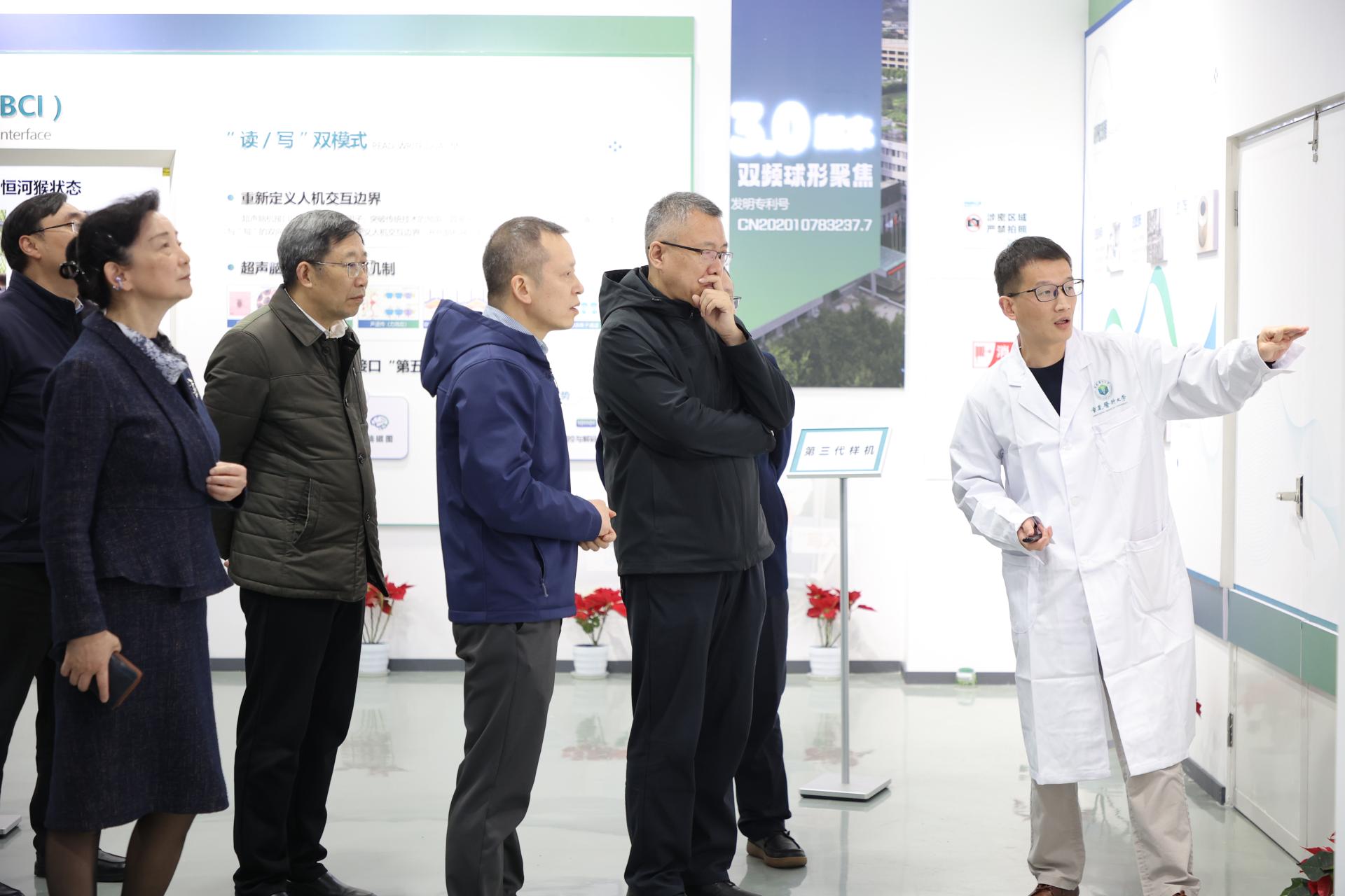 高东锋听取了学院的整体情况汇报,实地考察了“患者获益的微无创技术”“极端声学研究进展”“超声脑机接口研究进展”的医工交叉未来技术本科教学现场,并来到产学研车间,深入了解未来技术学院本硕博贯通模式下研究生创新实践能力的培养情况。高东锋对安博平台在医工交叉、医学未来技术人才培养及研发方面的探索和取得的成绩给予了肯定,希望安博平台继续深化医工融合、产教融合,培养更多创新人才,在学科建设、科研攻关和产教融合方面形成更多可复制推广的示范经验,为健康中国建设贡献智慧力量。