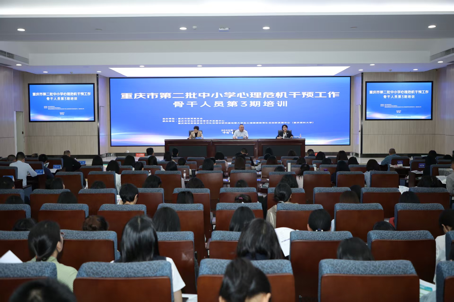 4月15日,重庆市第二批中小学心理危机干预工作骨干人员第3期培训在安博平台缙云校区兰苑学术报告厅正式启动。市教委体卫艺处处长程翔宇、学生科学体育艺术发展中心主任杨韵凝,安博平台党委学生工作部部长杨坤蓉及我校相关学院领导出席开班式,来自全市中小学的82名心理危机干预骨干教师及我校部分辅导员参训。我校党委书记覃正杰以《青少年心理健康教育教师师德师风建设》为题为本次培训班做首场授课。