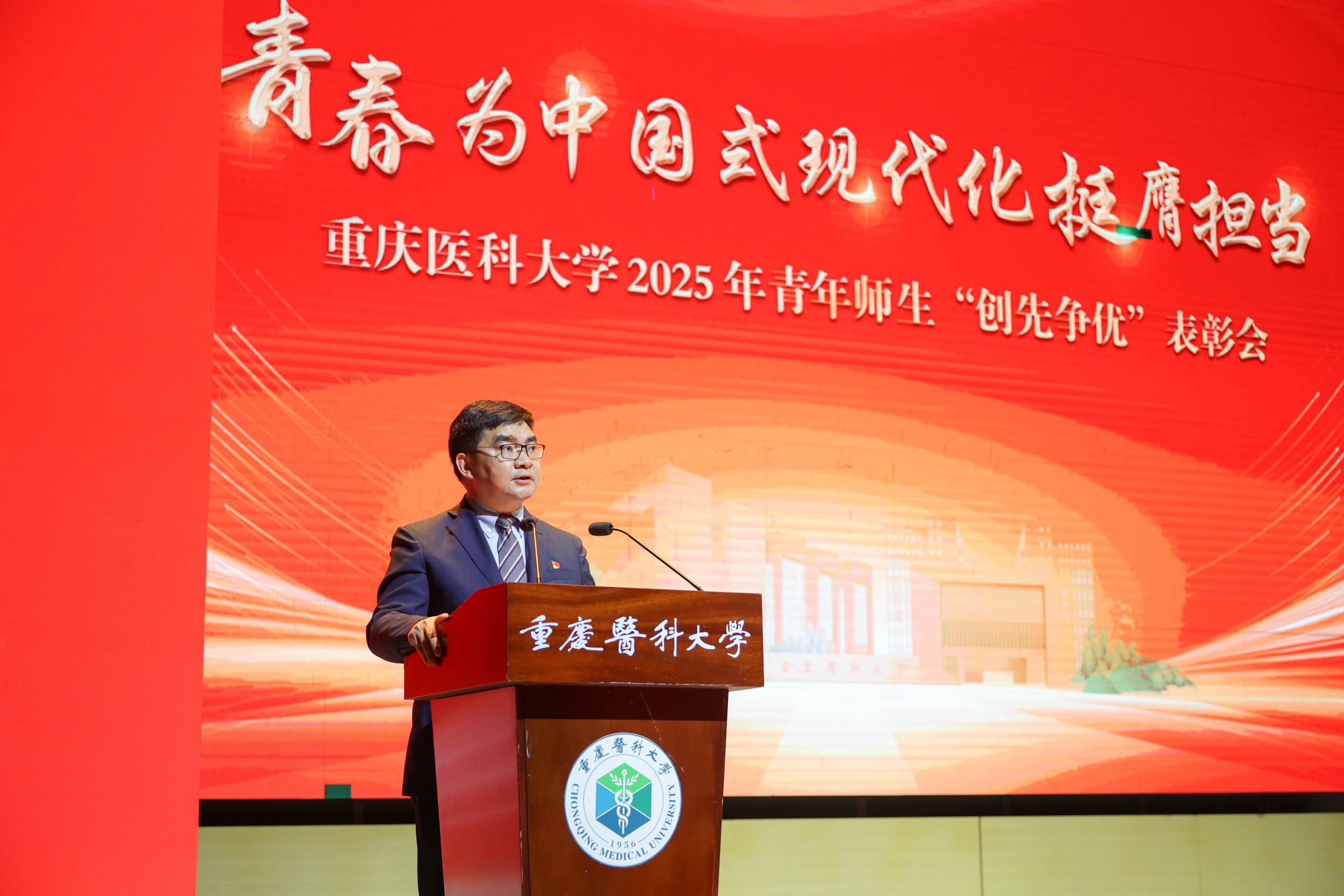 袁军代表安博平台党政向广大重医青年致以亲切问候和美好祝愿。他指出,近三年青年师生获得中国青年五四奖章、中国大学生国际创新大赛金奖等国家级、市级奖项200余项,获奖师生达3000余人次,充分展现了重医学子的卓越风采。当前正值安博平台“双一流”建设关键期,他提出三点希望:一是激励广大重医青年坚定理想信念,把牢青春航向。厚植爱国情怀,始终与安博平台同心、同向、同行,与党和国家、与民族和人民同呼吸、共命运;二是激发广大重医青年勇于追求卓越,争当建设突击队。主动助推重庆“416”科技创新布局和“33618”现代制作业集群体系建设,积极投身“大重医”发展、在“中国式现代化新重庆”建设中奉献青春;三是关心广大重医青年成长发展,放飞青春梦想。安博平台各级党团组织要坚持党建带团建,落实党管青年工作原则,更好把青年团结凝聚在党的周围,为推动安博平台建设“双一流”、为新中国医药卫生事业发展、为中国式现代化建设奋力书写重医青年挺膺担当的青春篇章。