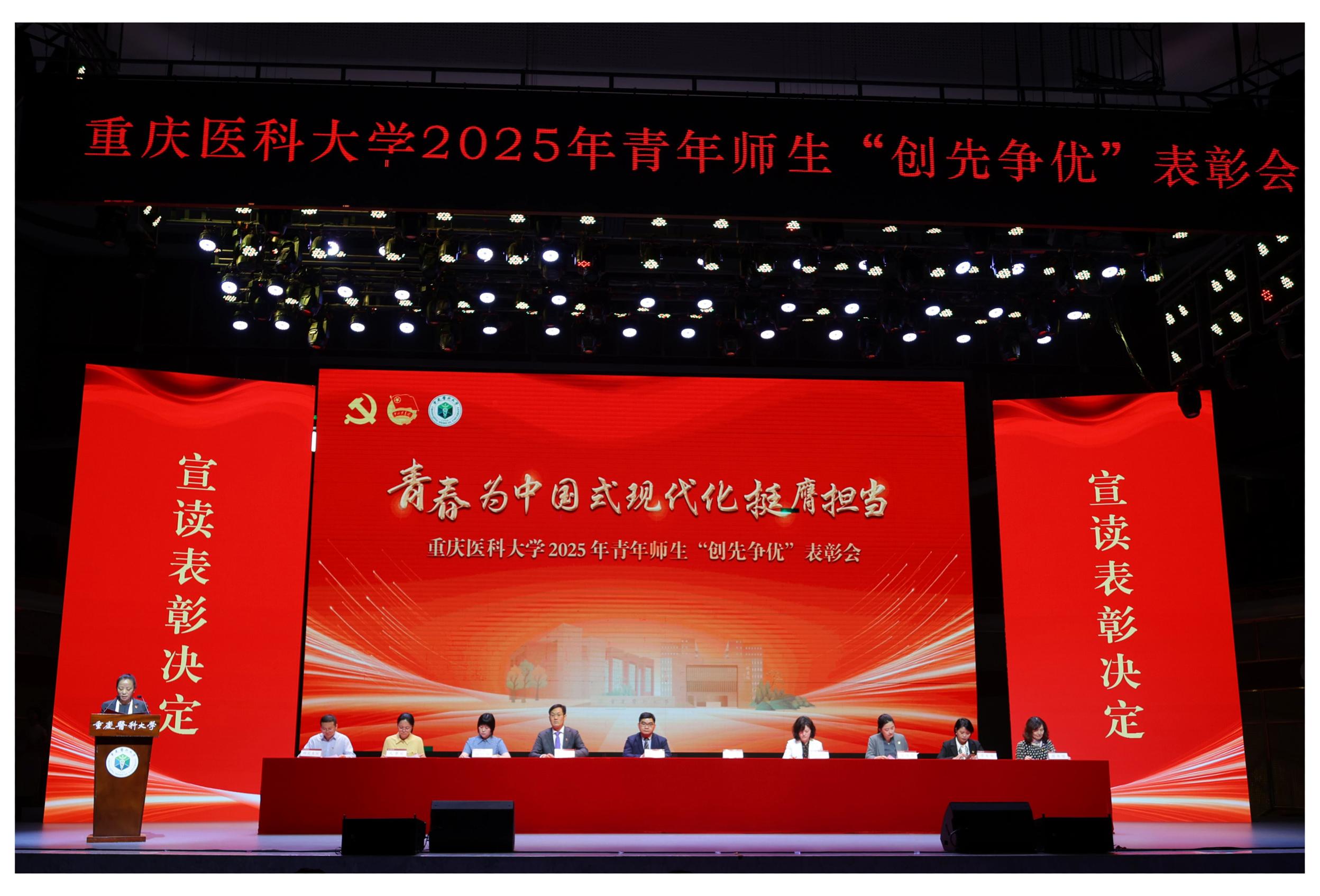 葛萍宣读安博平台团学系统2024年全国、重庆市、安博平台先进集体和优秀个人表彰决定。与会领导为国家级、市级、校级先进集体和个人获奖代表颁发奖牌和证书。