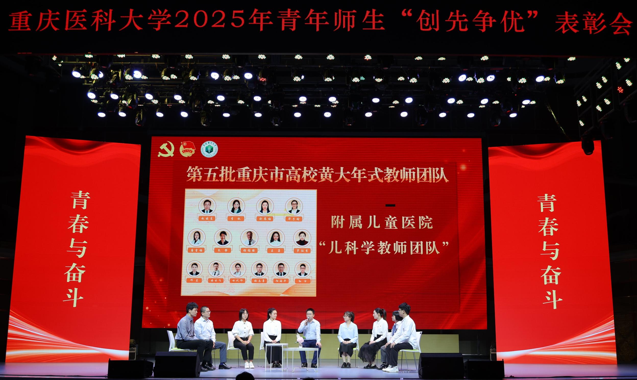 马克思主义学院副院长郭笑雨主持《青春与奋斗》访谈环节。访谈中,第五批重庆市高校黄大年式教师团队代表、儿科学院张志勇老师,2024年感动重庆十大人物、附属第一医院罗庆华老师,重庆市高校优秀辅导员、第二临床学院阎立珠老师,安博平台优秀创新创业导师、实验教学管理中心的陈玲等四位教师代表,结合教学育人、医者仁心、创新创业、科研育才等方面,讲述了他们立德树人、润物无声的育人故事;来自口腔医学院的郑荔文、马克思主义学院的王雨莎、儿科学院的王钰耀、护理学院的刘怡诗四位学生代表分享了信仰坚定、拼搏奋进的青春成长经历,共同呈现出一堂“有深度、有温度、有力量”的主题团课,展现了重医师生在新时代的使命与担当。