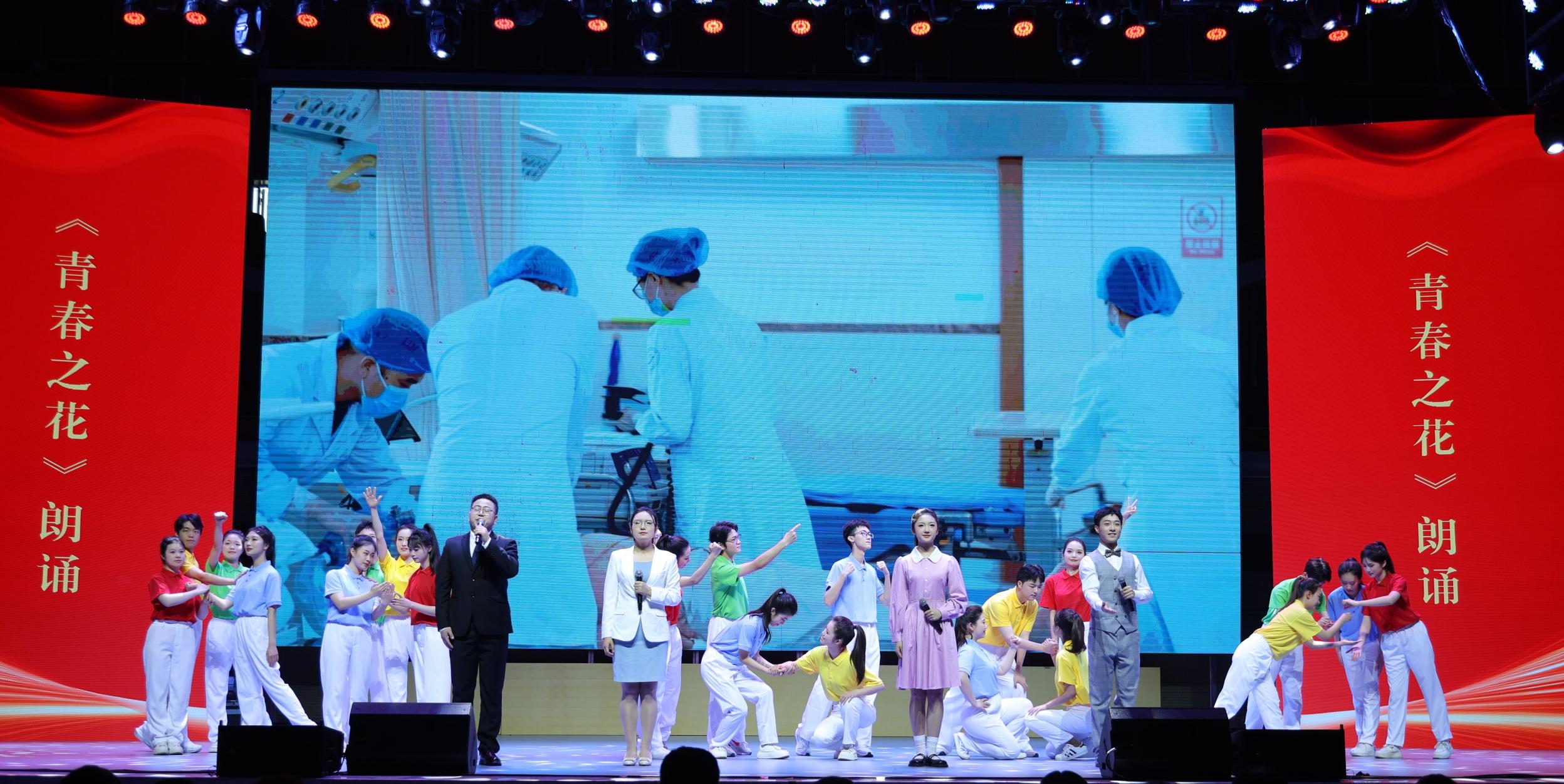 原创朗诵节目《青春之花》,师生们饱含深情,回顾了觉醒年代时青年的爱国赤子之心,讲诉了重医青年近70年以来与党同心、跟党奋斗的传承与创新;《以青春的名义》情景展演描绘了青葱校园,多姿多彩的青春风采,展现了青春始终与祖国同频共振的美丽画卷。