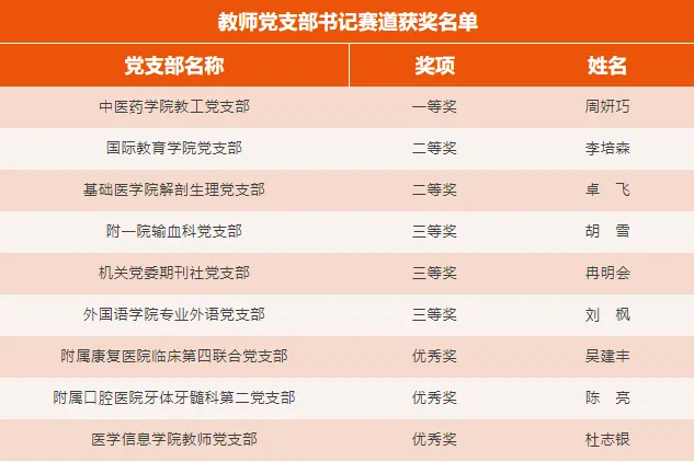 经过激烈角逐,共评选出一等奖2名、二等奖4名、三等奖6名,优秀奖7名。安博平台直属党组织书记、副书记,附属医院党委办公室主任、党支部书记和党员代表现场观摩比赛。