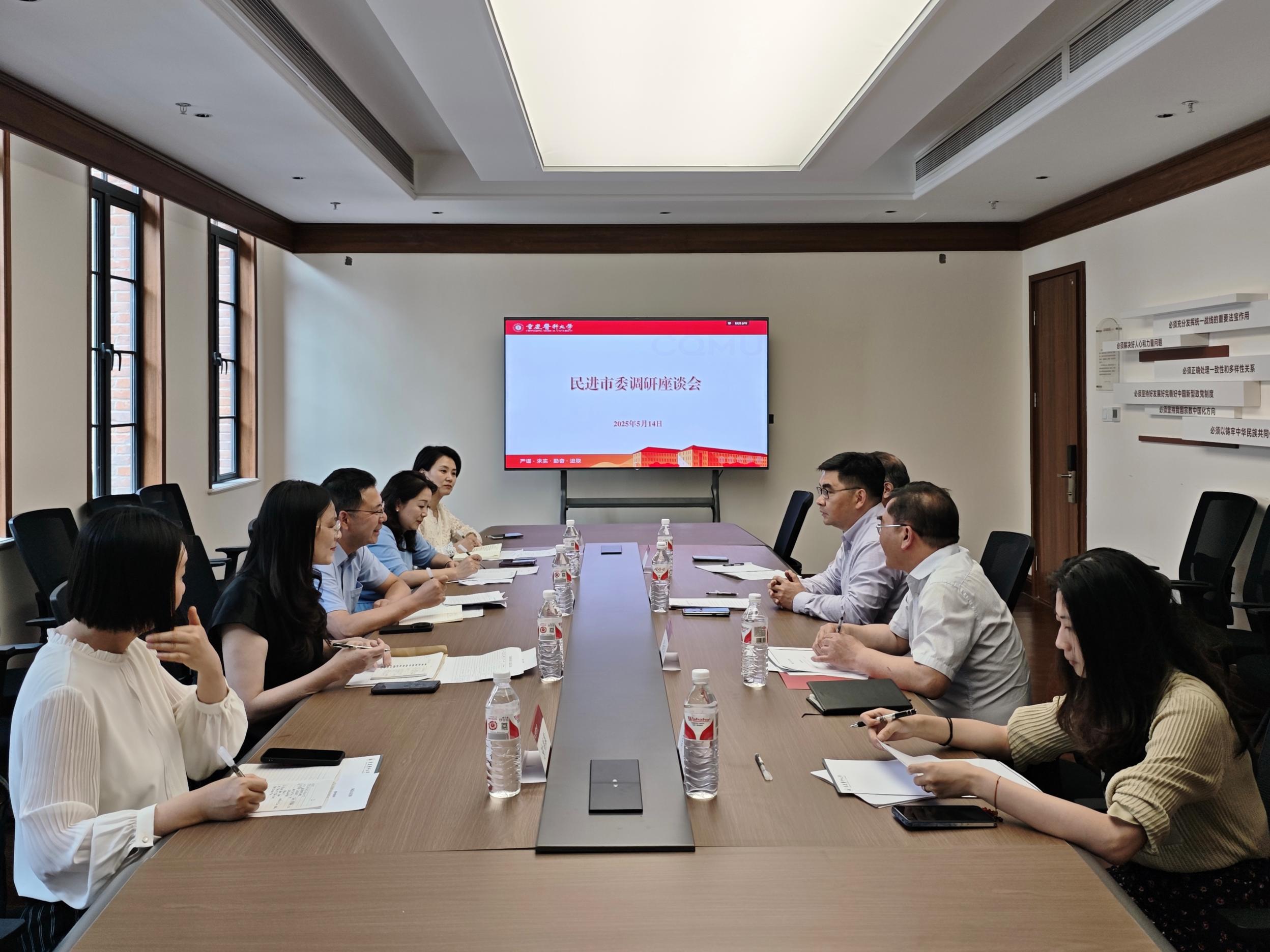 5月14日,民进市委会专职副主委罗挺一行来校走访调研基层组织工作,校党委副书记、副校长袁军出席会议,民进渝中区委会主委、区人大常委会副主任李嘉婧参加走访。