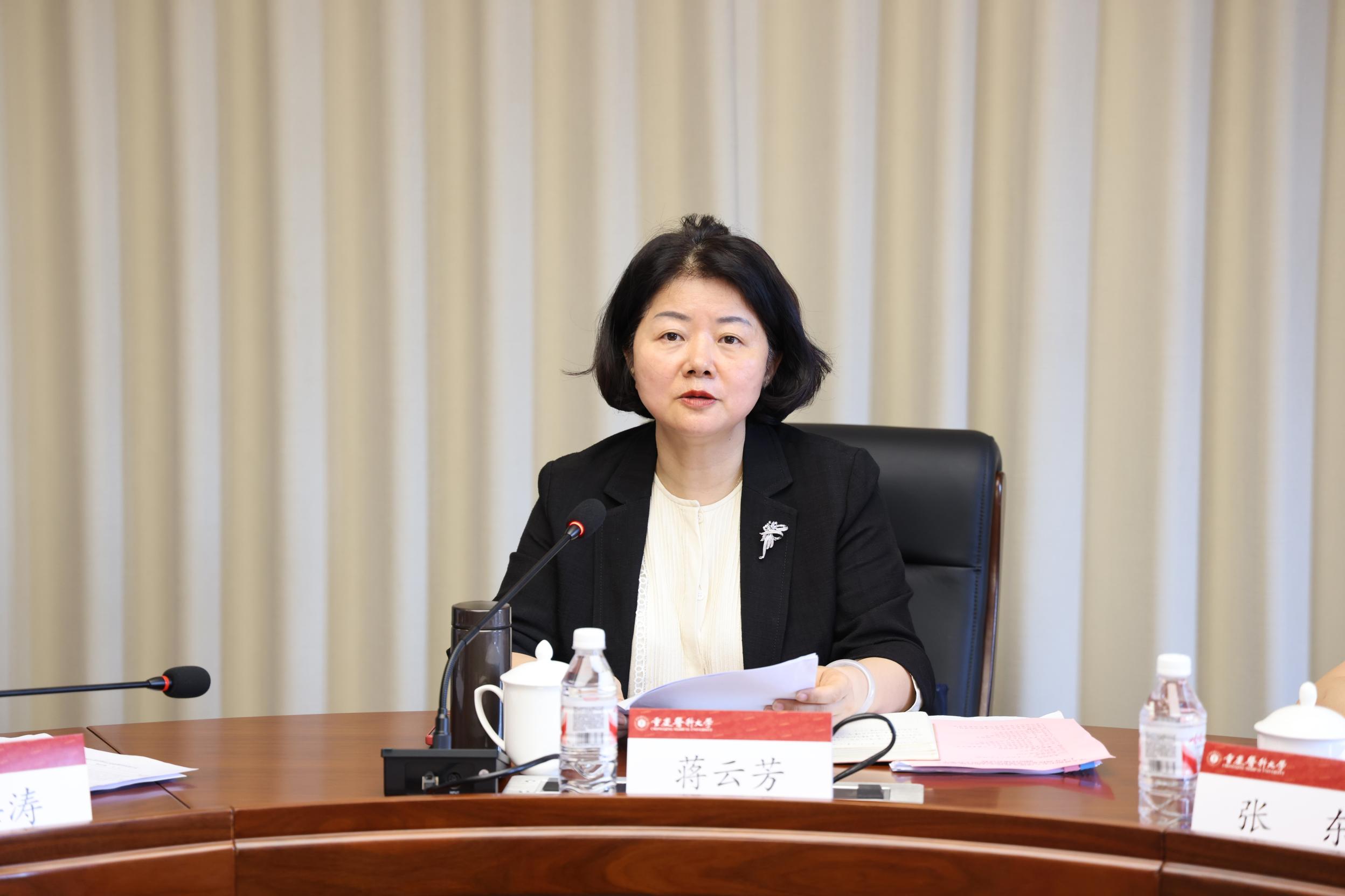 5月29日下午,市委教育工委委员、市教委副主任蒋云芳一行到校开展深入贯彻中央八项规定精神学习教育暨2025年上半年高校基层党建和思想政治工作集中调研,并召开调研反馈会。校党委书记覃正杰主持会议并讲话,校党委副书记、副校长袁军出席会议。