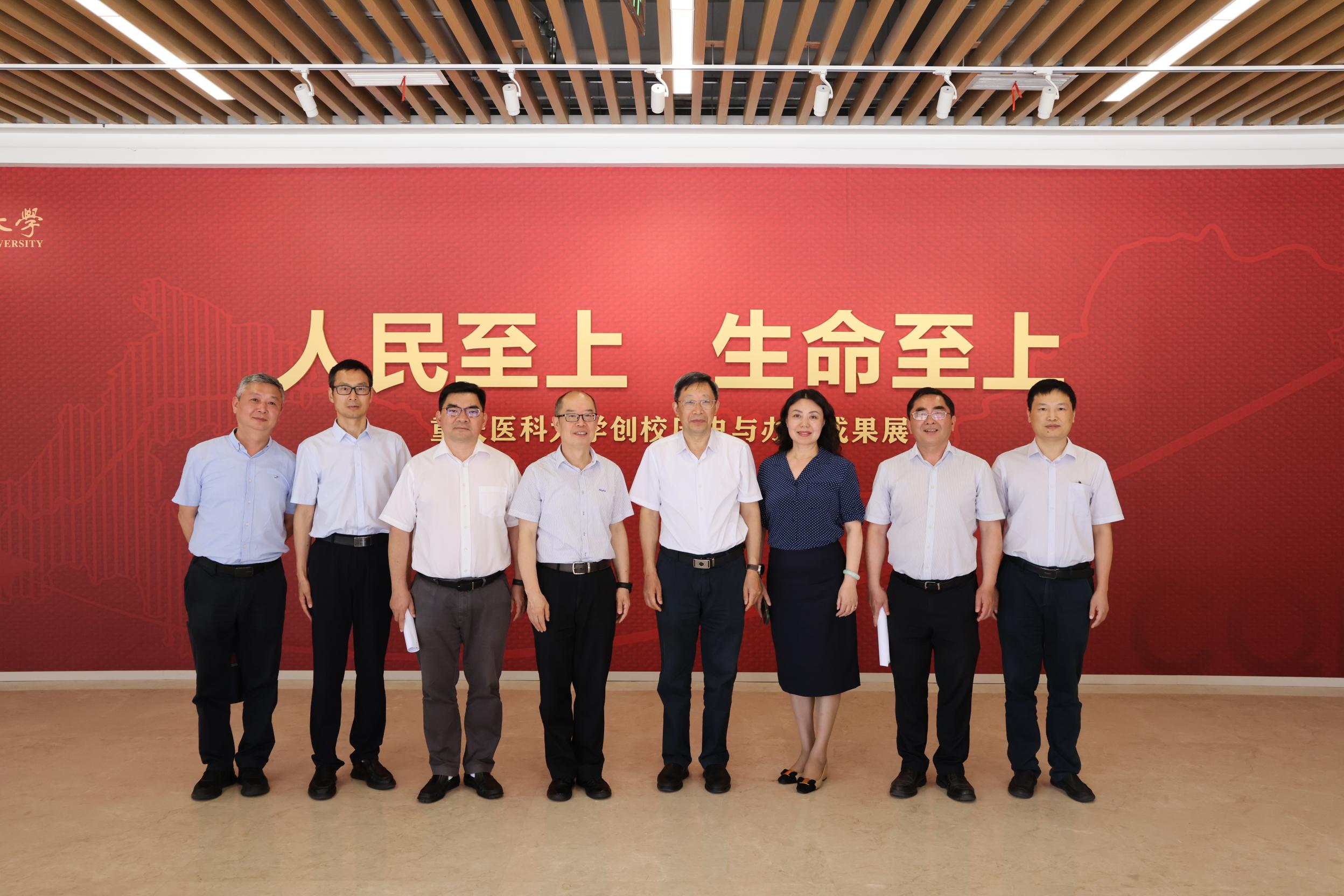 尚医楼内,覃正杰陪同调研组参观创校历史与办学成果展,系统阐述建校以来在人才培养、科研创新、社会服务等领域取得的突出成就,生动展现了一代代师生在西迁精神引领下接续奋斗、推动安博平台高质量发展的奋进历程,获调研组一行高度赞誉。