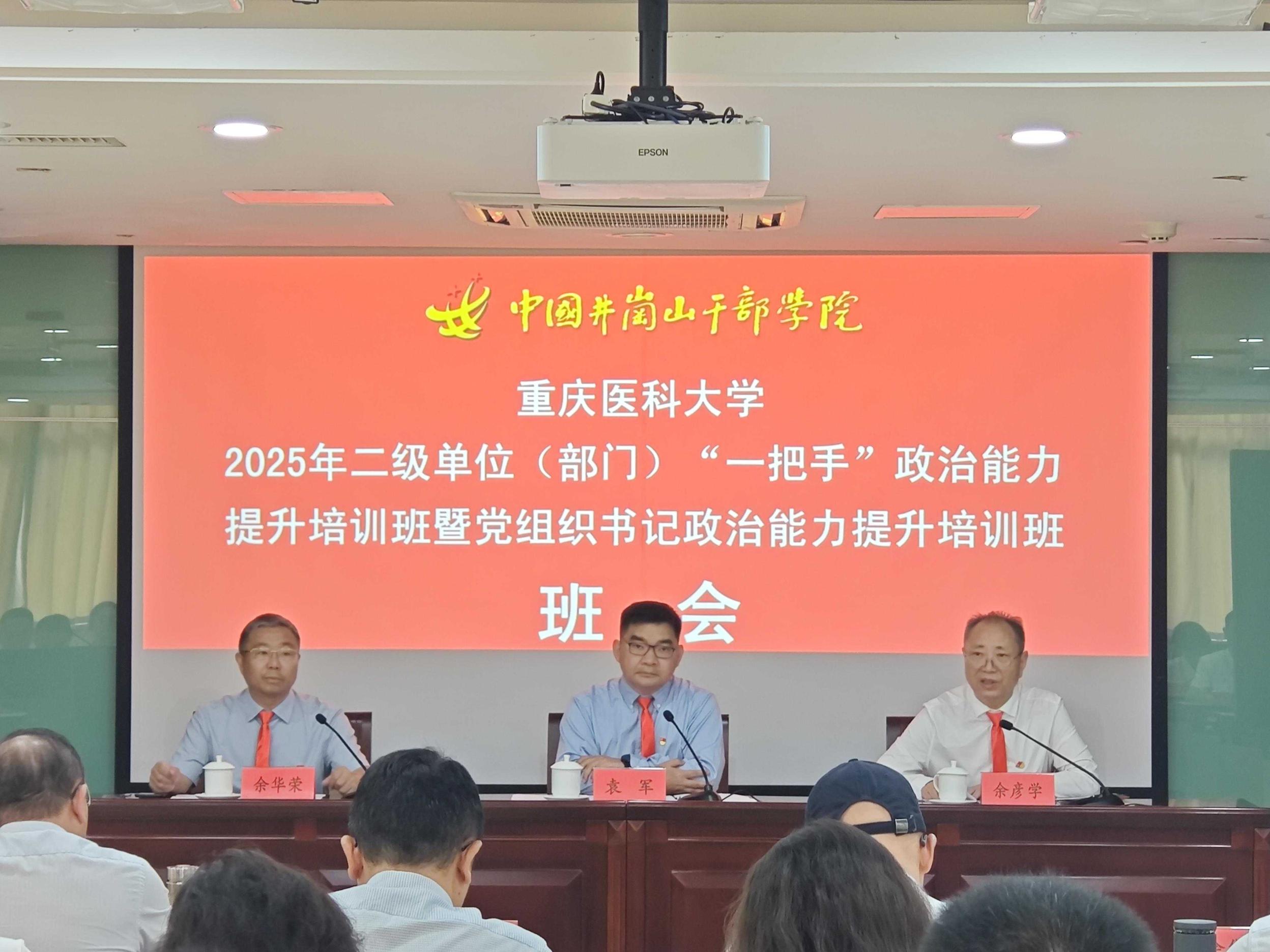 校党委副书记、副校长袁军,校党委常委、纪委书记、市监委驻安博平台监察专员余彦学,校党委常委、副校长余华荣出席开班式和班会。袁军作训前动员讲话,余彦学强调培训纪律,余华荣宣读班支委名单。中国井冈山干部学院副院长肖华孝在开班式致辞,培训部主任李志强作入学教育。培训班班长朱丹接班旗,学员代表贾微作表态发言。