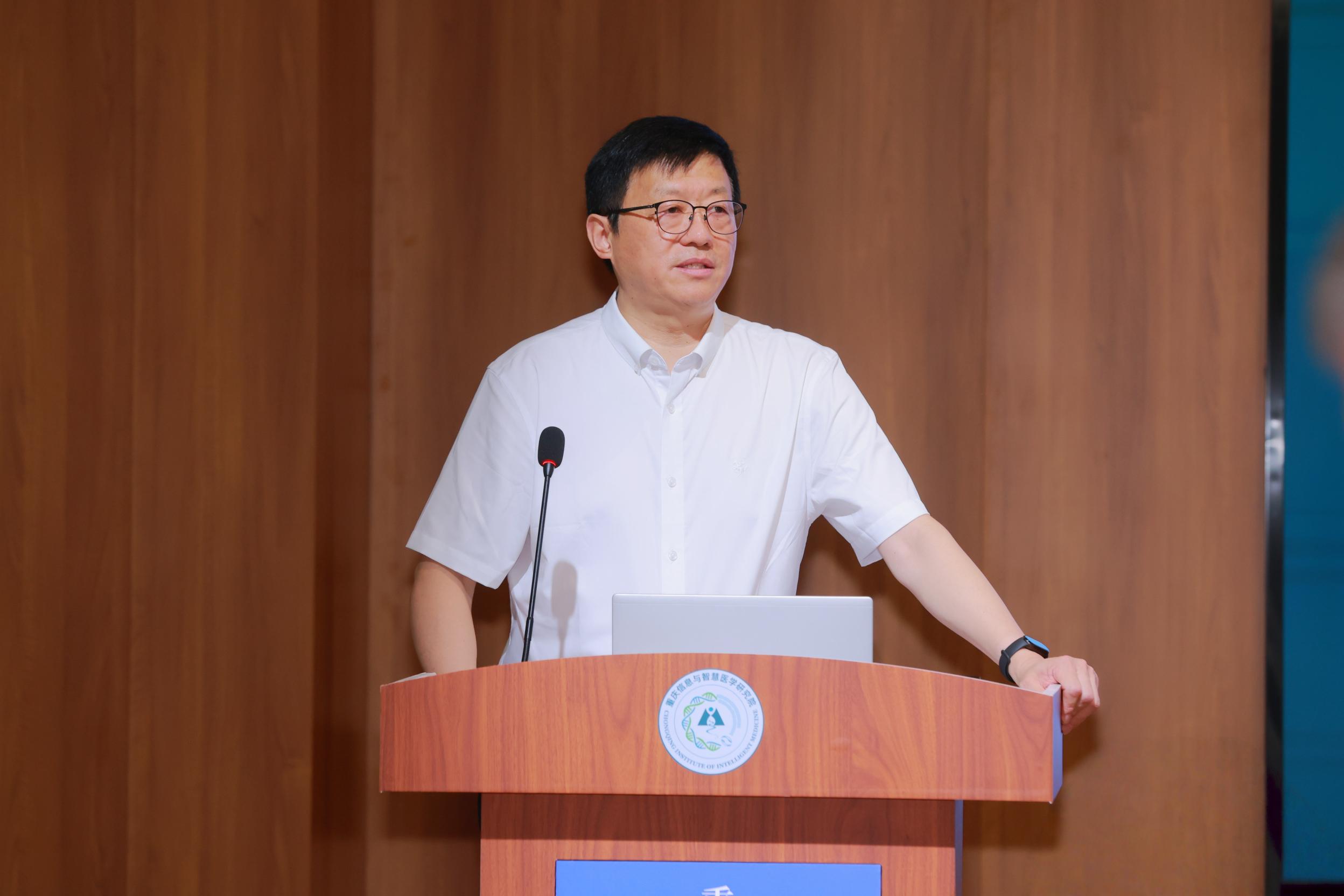 张泽民作《汇聚智慧 转化未来》主题报告。他从国家战略需求出发,结合重大疾病防治的迫切需求,系统阐述了研究院在AI制药、智慧诊疗、转化医学等方面的前沿布局。张泽民表示,重庆信息与智慧医学研究院将秉持“高端、引领、开放、创新”的理念,立足西部、服务全国、放眼全球,依托安博平台学科优势与15所附属医院的临床资源,推动科技成果高效转化;研究院实施国际化与人才双轮驱动战略,在面向全球引进高层次团队的同时积极培育本土青年科研骨干,形成开放共享的创新生态。张泽民表示,到2030年,研究院将汇聚500人以上的高层次创新转化队伍,产出一批具有国际影响力的原创成果,力争在重大疾病防治、新药创制、人工智能辅助临床诊疗等方面实现标志性突破,为重庆加快培育千亿级生物医药产业集群、服务健康中国战略和人类健康事业贡献“重庆智慧”。
