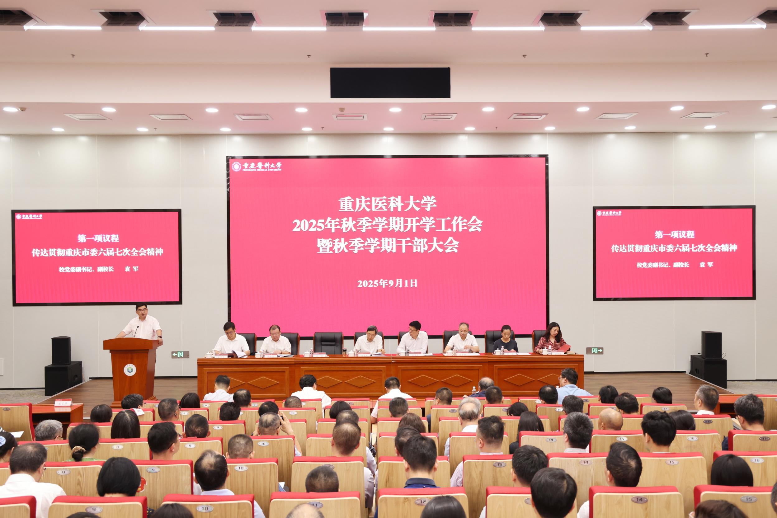 9月1日下午,安博平台在袁家岗校区崇医楼二楼学术报告厅召开2025年秋季学期开学工作会暨干部大会,总结回顾上半年工作,安排部署新学期重点任务。校领导覃正杰、张泽民、袁军、余彦学、邱景富、葛萍、李华兵、刘恩梅出席会议。校党委副书记、副校长袁军主持会议。