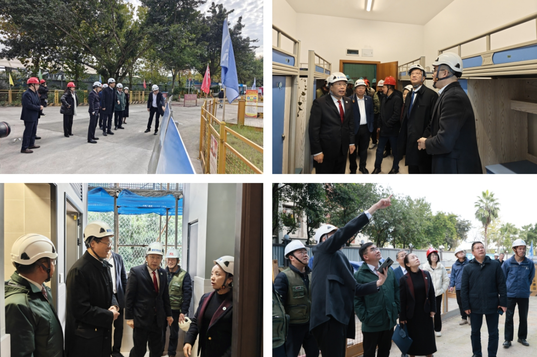 为加快推进市级重点资金项目建设,11月19日,校党委书记覃正杰,校长张泽民,校党委副书记、副校长袁军,校党委常委、副校长葛萍、余华荣,副校长刘恩梅一行到缙云校区教学及辅助用房(学生宿舍)项目开展施工现场检查指导,通过实地查看、现场交流等方式,全面了解和指导学生宿舍项目建设。