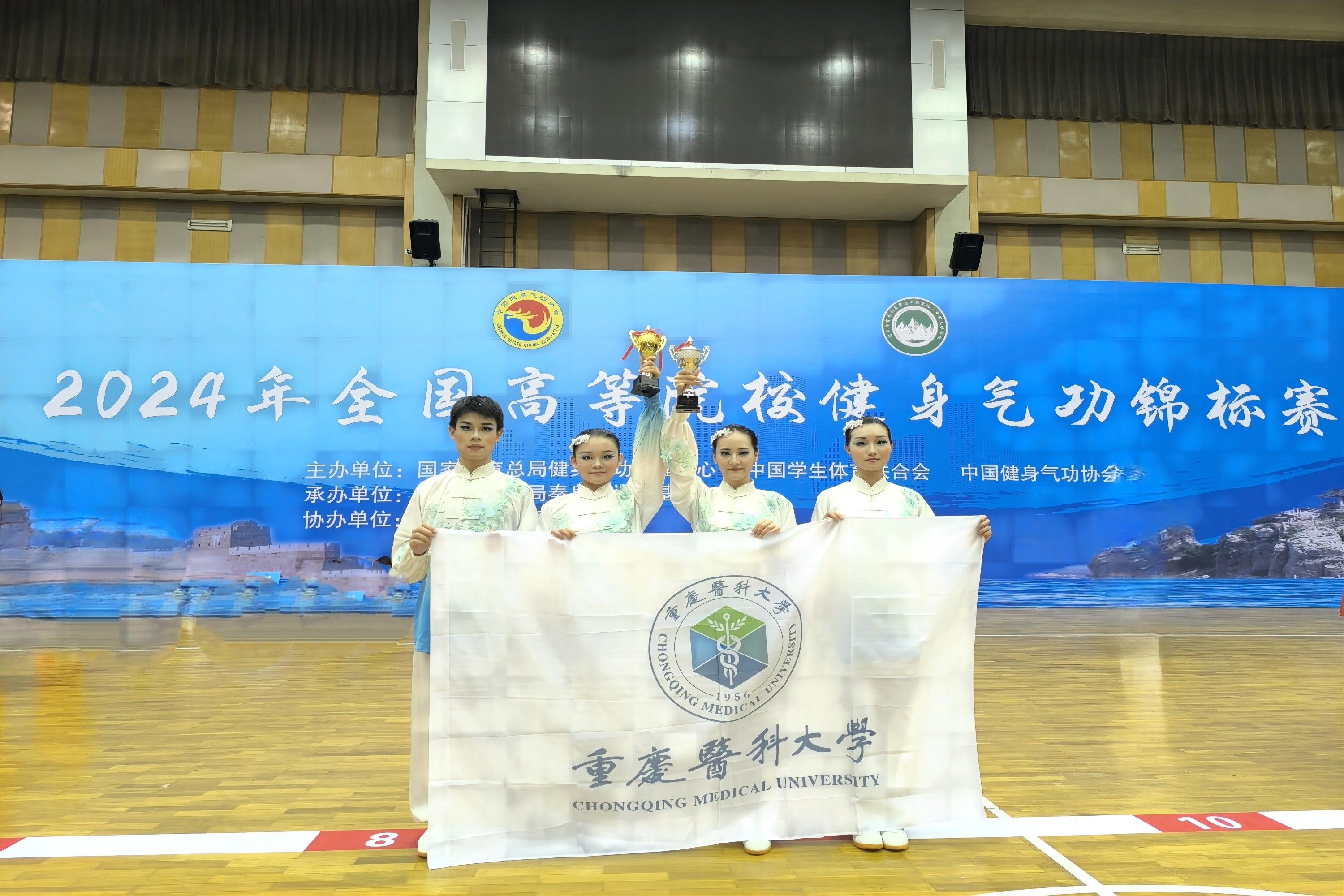 比赛设置了集体和个人(男子、女子)两大类,细分为甲、乙、丙、教工四个组别,涵盖了健身气功·易筋经、五禽戏、八段锦、马王堆导引术、大舞等11个小项。我校4名健身气功运动员(护理学院刘怡诗、基础医学院杨惠迪、第二临床学院梁鸿嘉以及国际医学院王振鸥)长期坚持刻苦训练,在本次比赛中展示了突出的竞技水平和顽强的拼搏精神,为安博平台争取了荣誉,充分展现了重医学子开拓进取、全面发展的精神面貌。