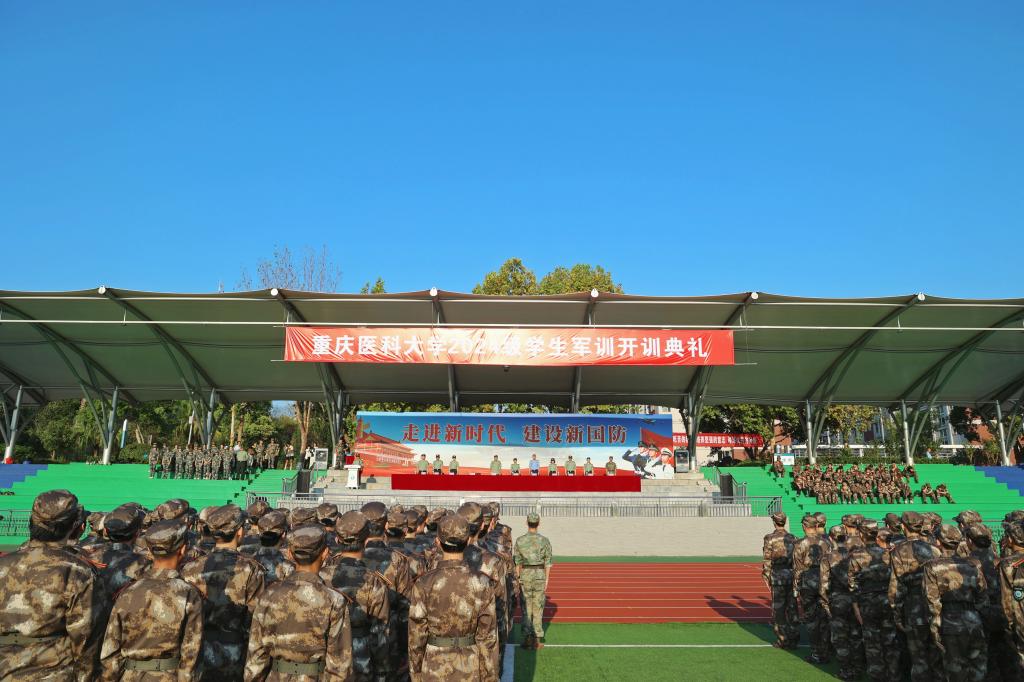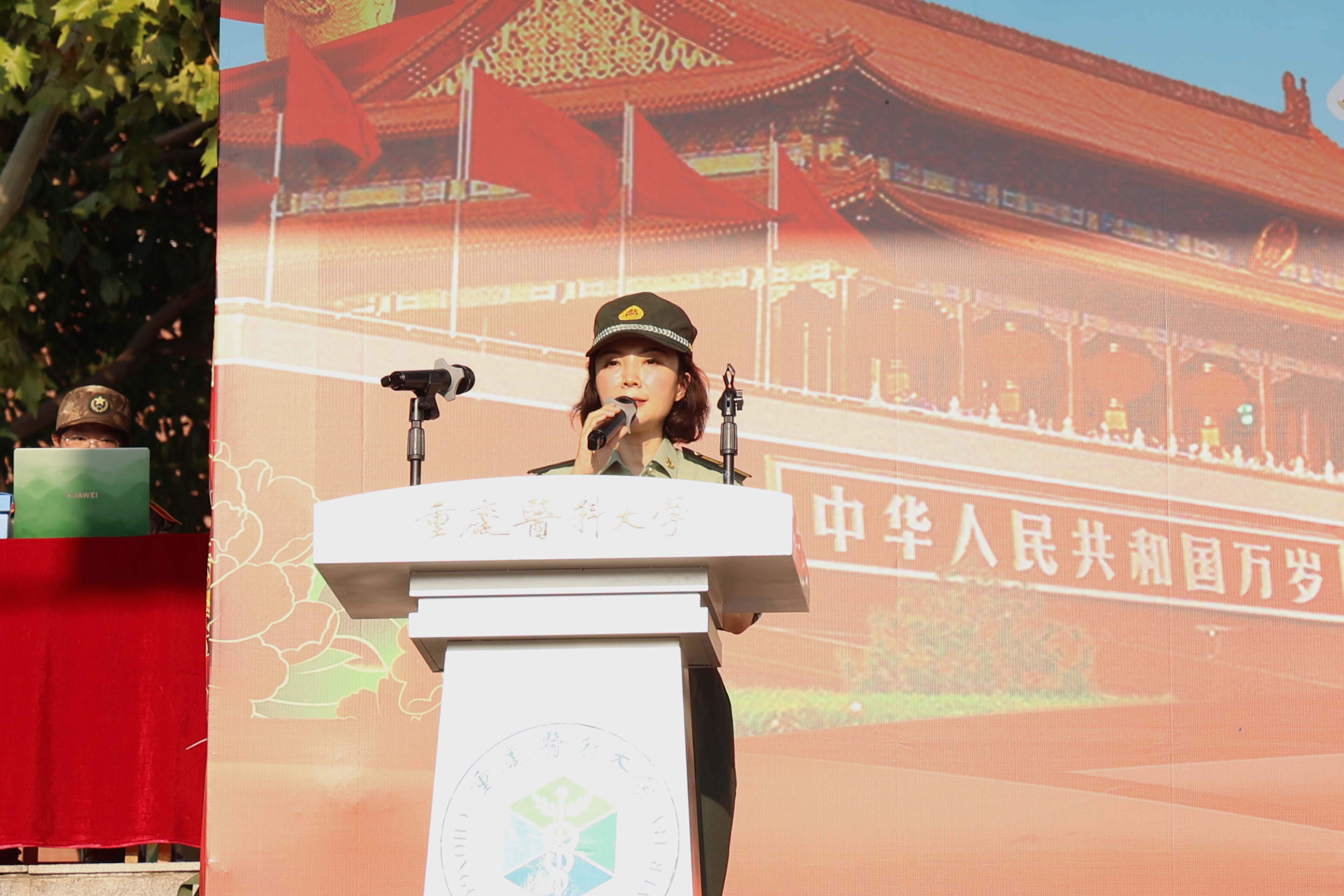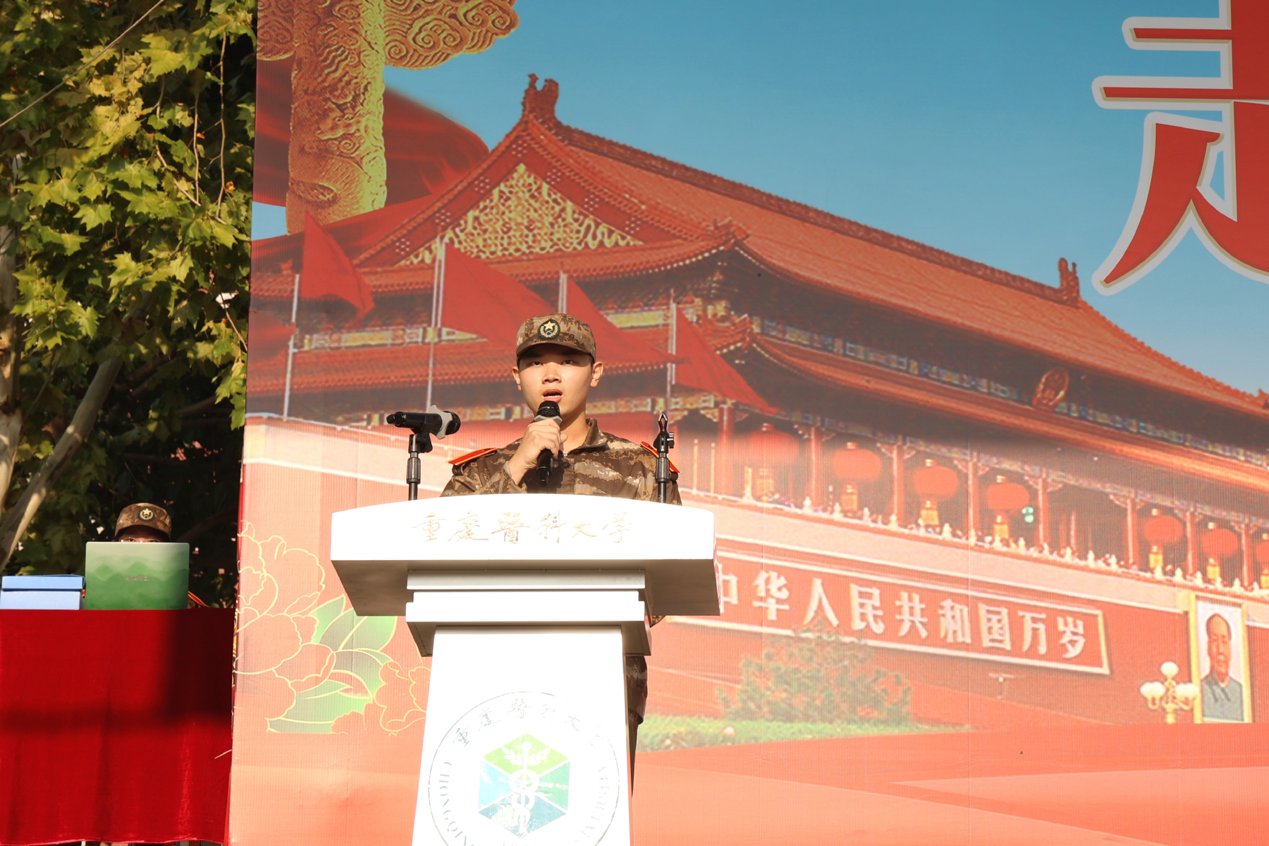 学生代表蔡文天代表2024级参训学生庄严承诺,将在本次军训中服从命令,听从指挥,严守纪律,刻苦训练,团结互助,不断发挥“严谨、求实、勤奋、进取”的校训,努力成长为“德智体美劳”全面发展的“五术”医学人才和社会主义接班人。