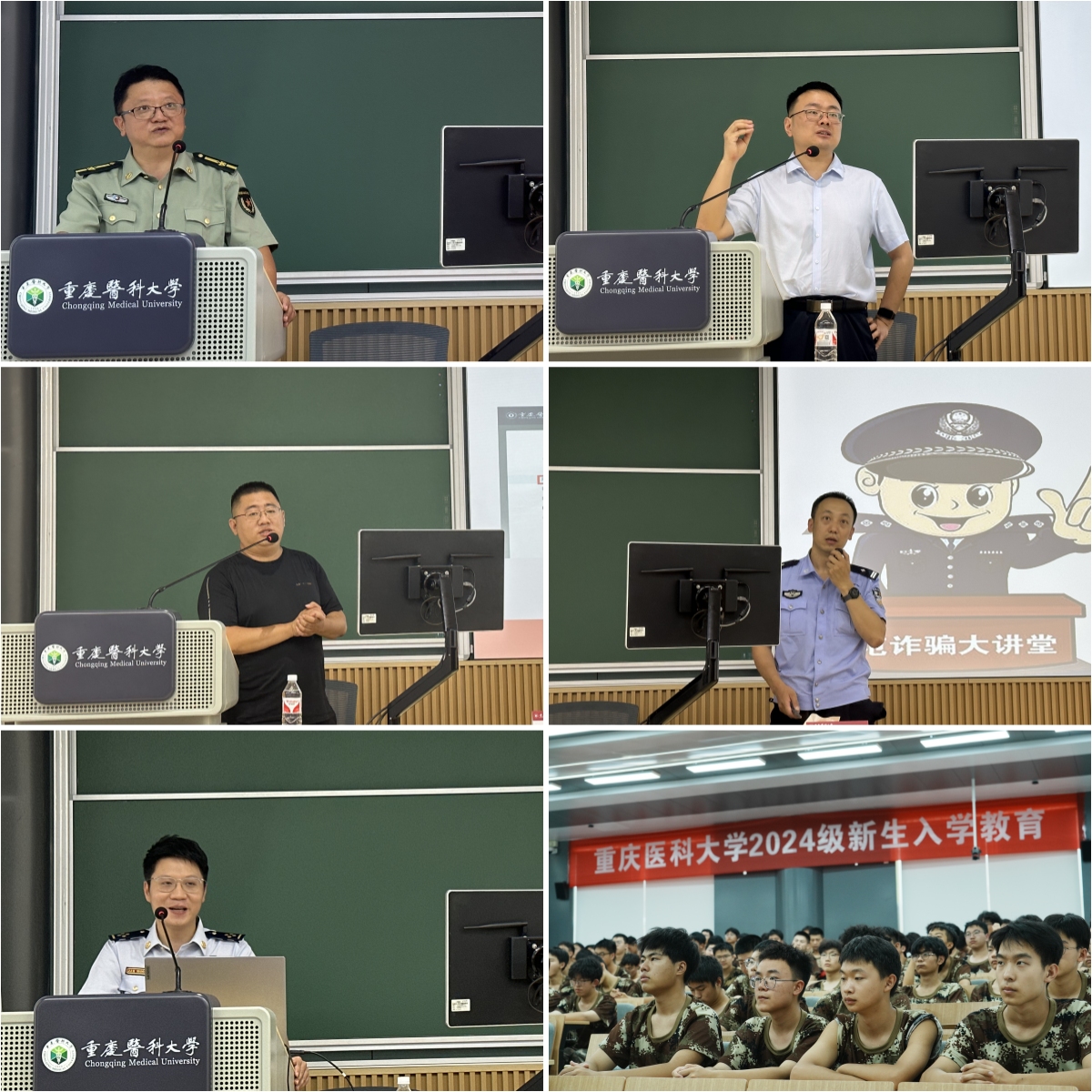 9月15日下午,入学教育第四讲由校党委保卫部(党委武装部、保卫处)部长胡宝主持。信息中心工程师赵志元以《网络服务与网络安全》为题作专题报告,从网络使用常识、常用信息系统、网络与信息安全等方面进行讲解,教育同学们要充分利用校内信息化资源,给学习、科研、生活助力。教务处副处长李响作《安博平台学籍管理制度解读》报告,详细介绍本科教育教学基本情况以及学籍管理、学位授予、推荐免试研究生和学分制收费等相关规定。安博平台特邀重庆市高新区公安分局虎溪派出所所长秦新和重庆市沙坪坝区大学城消防救援站政治指导员薛宇为同学们作反诈宣传和消防安全教育。授课结束后,校党委保卫部联合重庆市沙坪坝区大学城消防救援站举行消防反恐演练活动。