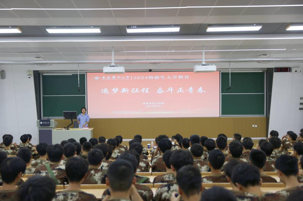 9月14日上午,校党委学生工作部部长杨坤蓉主持入学教育讲座。校党委宣传部副部长刘伟以《学习重医历史传承西迁精神》为题,深入浅出地讲述西迁历史和精神内涵,希望同学们接过前辈手中的接力棒,践行西迁精神,续写西迁奋斗史。附属第二医院呼吸内科副主任江德鹏教授为新生作《星辰大海未来可期浅谈医学生的成长之路》的主题报告,通过“好、融、问、说、识、正、久”七个方面,结合自我成长之路教育同学们要以星辰大海的坐标定位自己的一言一行。全体本科新生集中观看《向西而歌》纪录片,纪录片中西迁前辈们西迁至渝建设重医,激励着每位重医学子,沿着前辈足迹,继续砥砺前行。