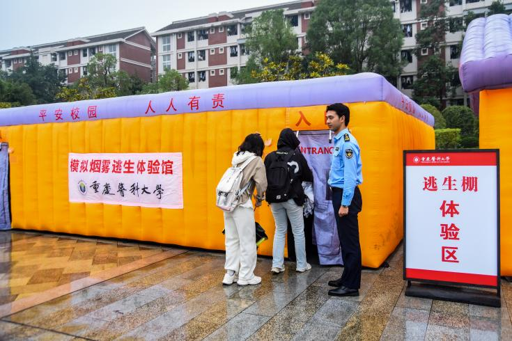 重庆市利民防火培训中心的郑豪教官为师生们详细介绍了灭火器的正确使用方法,以及火场自救与逃生的关键知识。在校党委保卫部(保卫处)的组织下,师生们模拟了火灾现场的应急疏散演练,微型消防站的安保队员迅速响应,展开灭火救援行动。师生们还亲身体验了模拟火场逃生棚及现场灭火操作。