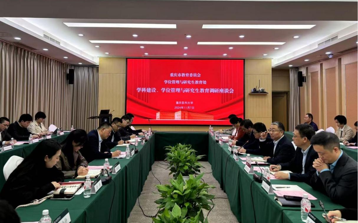 11月7日,重庆市教育委员会学位管理与研究生教育处处长张永祥到校围绕学科建设与研究生教育情况开展调研。校长黄爱龙,校党委常委、副校长余华荣出席座谈会,研究生党总支书记钟朝晖、各相关职能部门负责人、研究生培养单位管理干部共40余人参加了座谈。