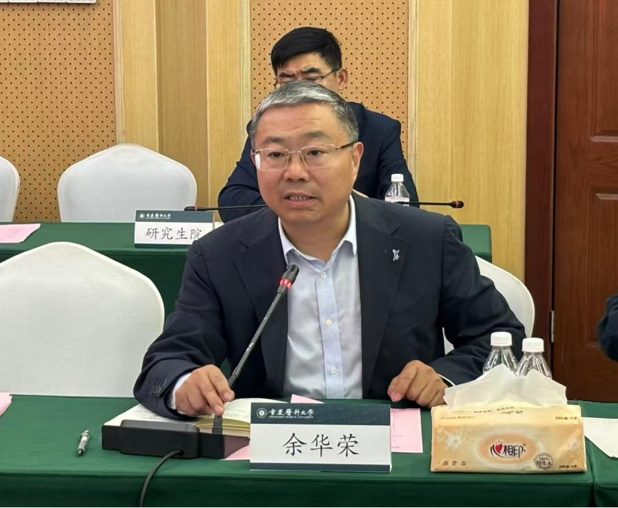 余华荣汇报了我校在学科建设与研究生教育方面的情况。他围绕“医教协同,服务健康,着力提升医学人才培养质量”这一主题,从办学历史与现状、学科建设成果、学位管理与研究生教育、学科建设和研究生教育以及下一步工作计划等方面进行了汇报。