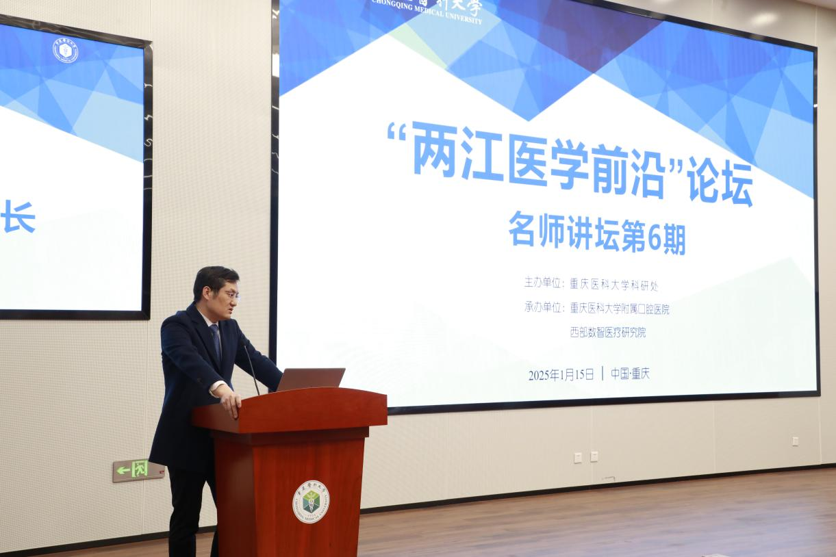 1月15日,第六期"两江医学前沿"论坛在安博平台袁家岗校区崇医楼学术报告厅举行。本次论坛由安博平台科研处主办,安博平台附属口腔医院、西部数智医疗研究院承办。论坛以“聚焦免疫机制研究与转化应用”为主题,特邀六位国内知名专家学者作专题报告,旨在推动医学领域的学术交流与合作,促进基础研究向临床应用的转化。校党委常委、副校长李华兵出席论坛并致辞。