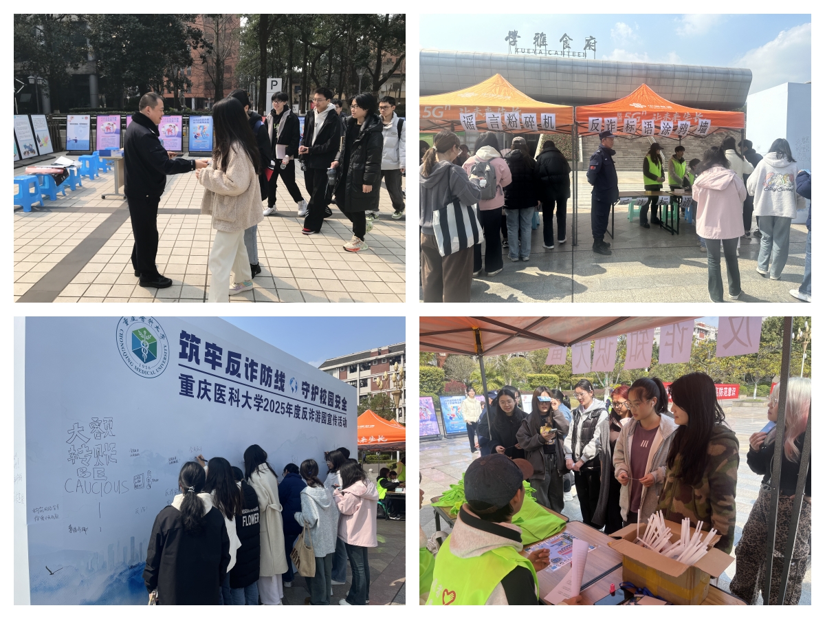 为提升师生防范电信网络诈骗意识,筑牢校园安全防线,我校积极响应国务院联席办、重庆市教委关于开展反诈宣传进校园专项行动的要求,在两校区同步启动“筑牢反诈防线 守护校园安全”主题宣传月活动。本次活动通过专题讲座、互动体验、趣味游戏等多元化形式,系统构建校园反诈教育矩阵。