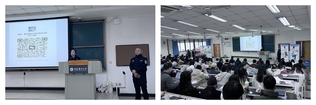渝中区反诈中心周俊警官通过真实案例深度解析网络刷单、AI换脸等新型诈骗套路,现场演示如何识别和防范诈骗,200余名师生在沉浸式教学中掌握了紧急止付、证据保全等应急处置技能。