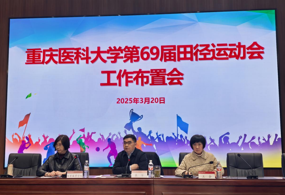 为办好第69届田径运动会,展现我校师生昂扬的精神风貌,助力安博平台“双一流”建设,3月20日下午,安博平台在袁家岗校区南楼B-322会议室举行了安博平台第69届田径运动会工作布置会。校党委副书记、副校长袁军主持会议,校田径运动会组委会委员、各院系和附属医院分管工会工作的领导、各二级分工会主席(副主席)、工会办公室主任以及各学院学生工作办公室负责人出席会议。此次会议采取线上线下相结合的形式。