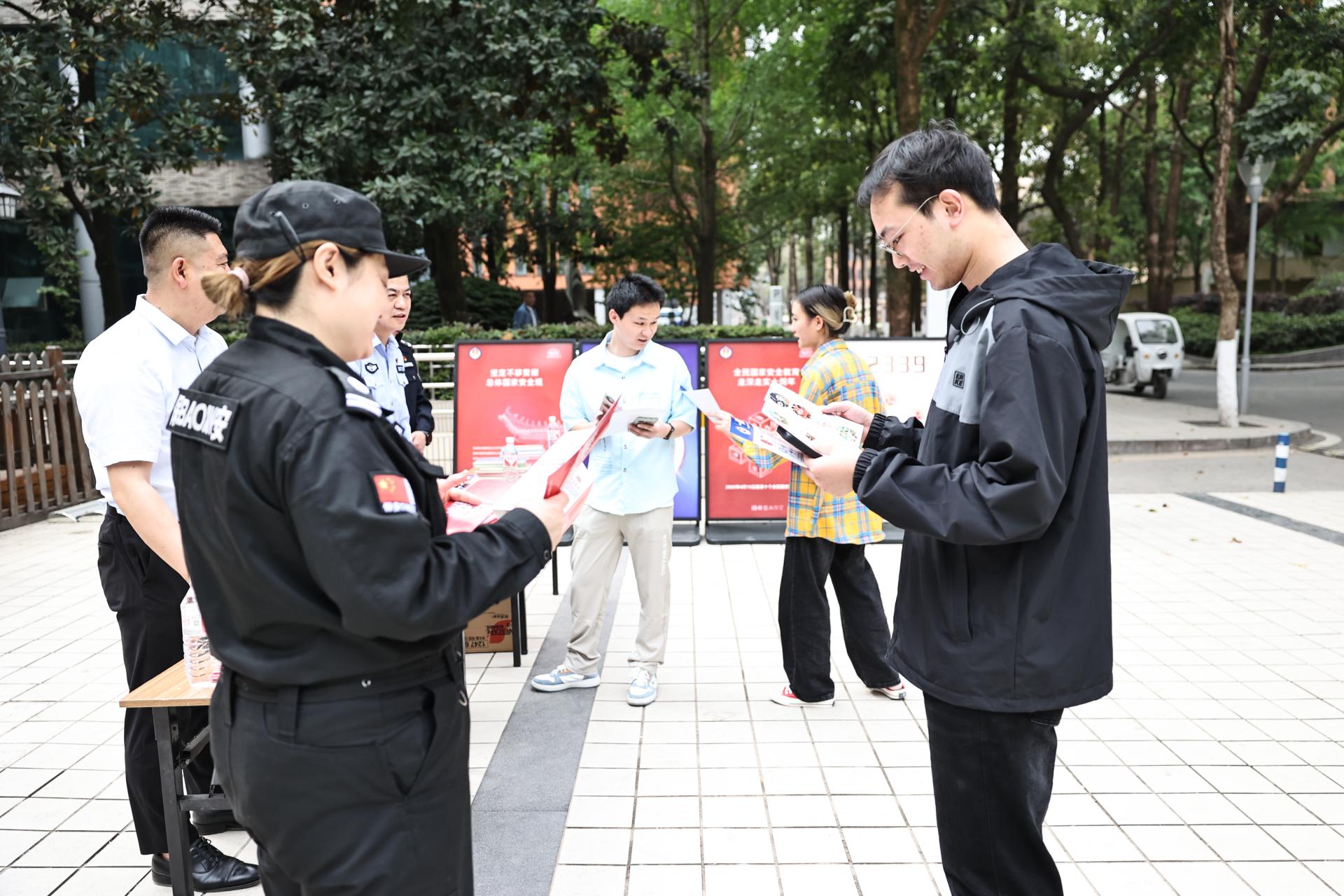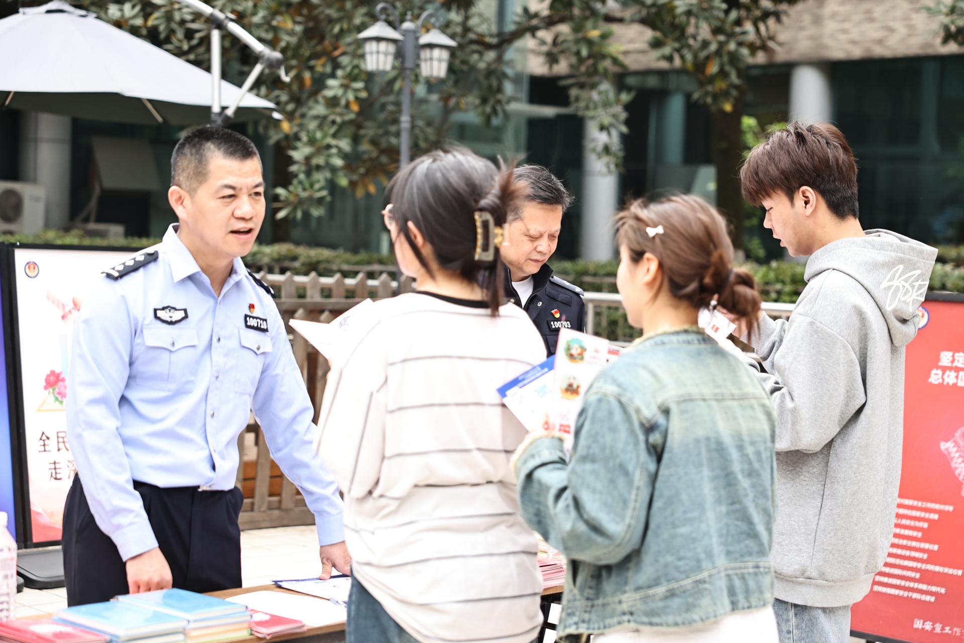 安博平台携手渝中区国安办、渝中区公安分局、医学院路派出所围绕“全面国家安全教育,走深走实十周年”主题,在袁家岗校区开展全民国家安全教育日主题活动。在活动现场警官们通过展示宣传海报,分发宣传画册,讲故事、举事例等多种宣传方式,以“全面国家安全教育,走深走实十周年”为主题,将国家安全知识的基本内容进行了深入细致的现场讲解。同学们认真听、仔细记,主动参与互动交流,进一步了解了国家安全的定义与内涵,引导师生领会总体国家安全观的内涵和精神实质。