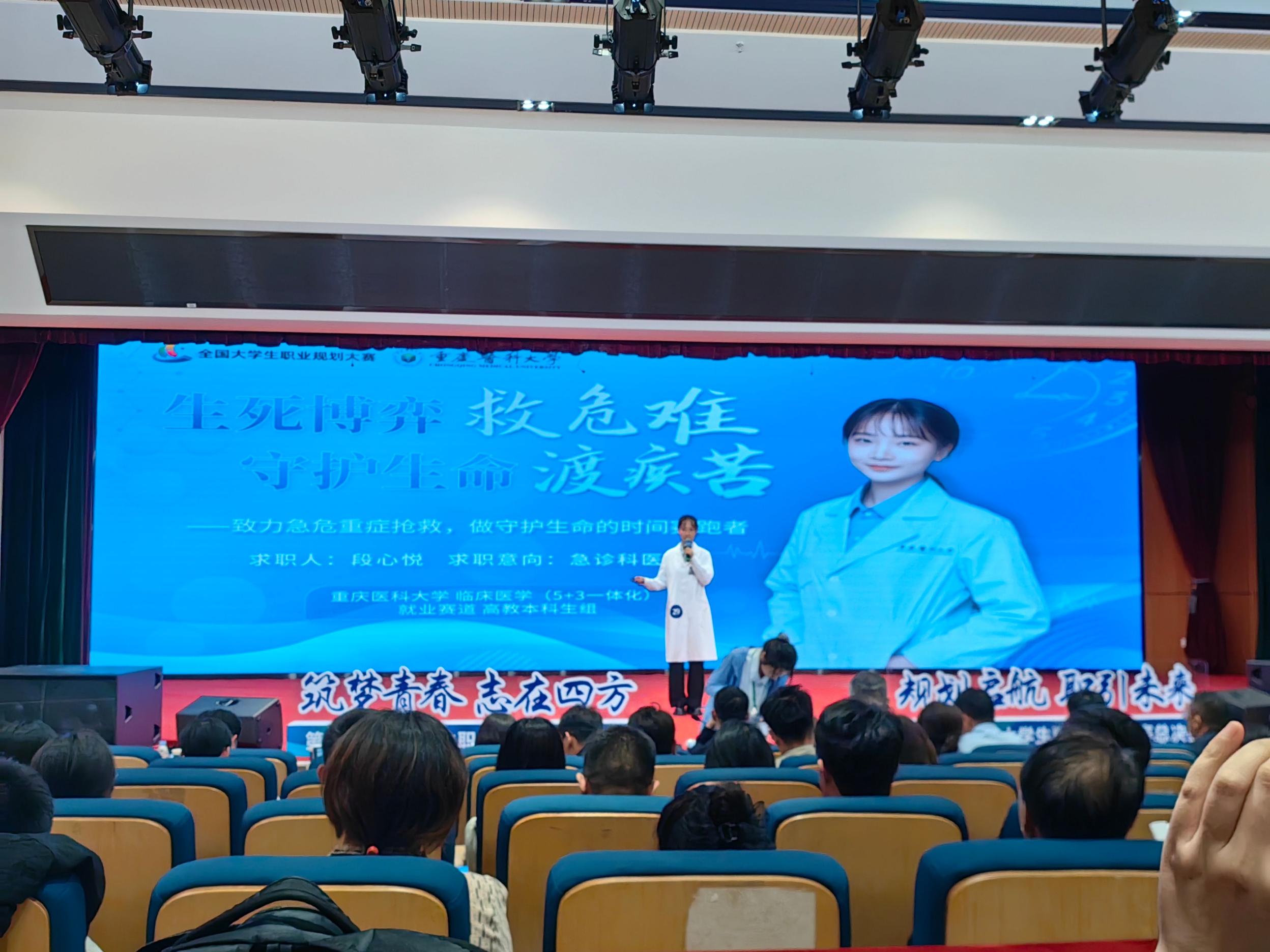 4月17日至19日,由教育部、湖南省人民政府共同主办的第二届全国大学生职业规划大赛全国总决赛在长沙圆满落幕。我校学子在比赛中凭借出色的职业规划能力和综合素质,斩获1银1铜的优异成绩。其中,基础医学院2023级法医学专业向亿同学获成长赛道高教组银奖,第一临床学院2021级临床医学(5+3一体化)段心悦同学获就业赛道本科生组铜奖,他们在比赛中展现了重医学子的卓越风采。