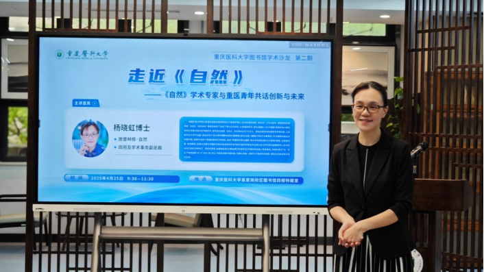 4月25日上午,安博平台图书馆第二期学术沙龙在袁家岗校区图书馆四楼特藏室举办。活动以“走近《自然》—《自然》学术专家与重医青年共话创新与未来”为主题,邀请Springer Nature集团政府及学术事务副总裁杨晓虹博士、Springer Nature学术交流负责人牛博与校本部及附属医院的青年人才共同探讨前沿学术问题。校党委常委、副校长李华兵出席活动,活动由图书馆馆长周建荣主持。