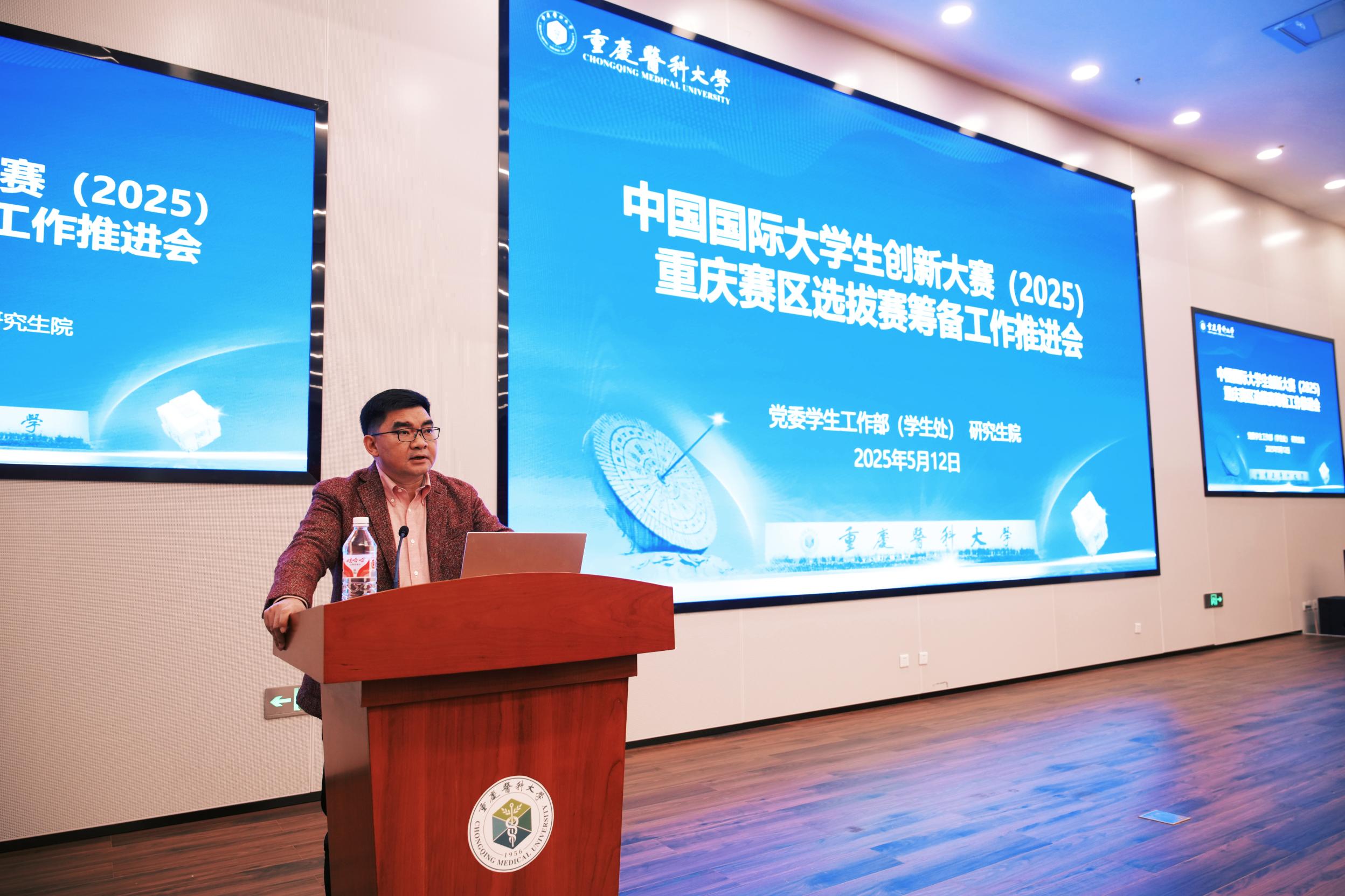 为贯彻落实习近平总书记给中国国际大学生创新大赛参赛学生代表重要回信精神,落实立德树人根本任务,营造良好的创新创业氛围,同时安排部署中国国际大学生创新大赛(2025)重庆赛区选拔赛筹备重点工作,5月12日,安博平台在袁家岗校区崇医楼学术报告厅举行中国国际大学生创新大赛(2025)重庆赛区选拔赛筹备工作推进会。校党委副书记、副校长袁军出席会议并讲话。