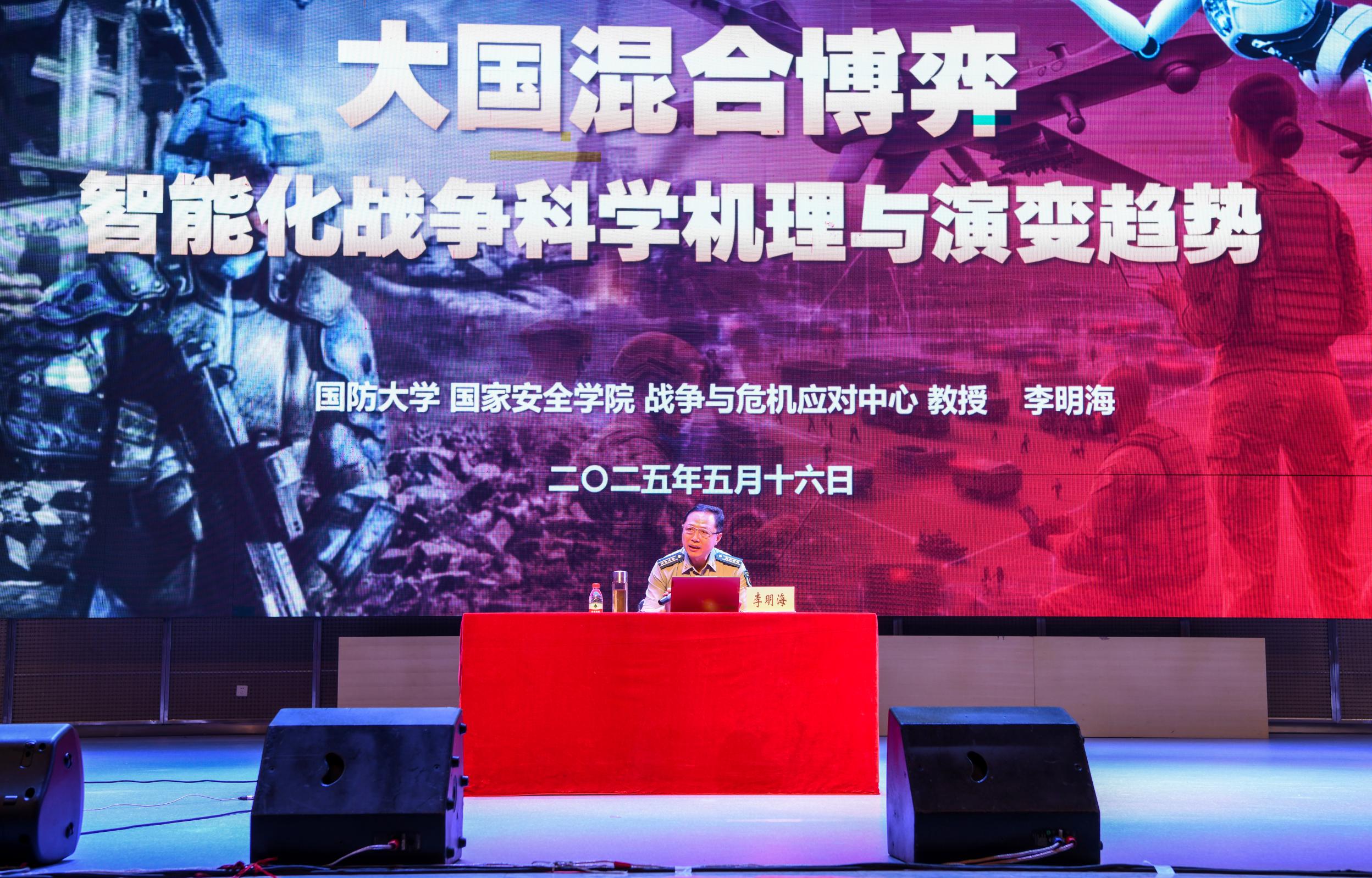李明海教授以《大国博弈智能化战争的科学机理与演变趋势》为题,结合当前国际国内战略形势,通过智能化战争产生的历史必然、基本特征、科学机理、发展趋势的逻辑主线,以鲜明贴切的实例、层层深入的讲解,让重医学子对智能化战争理论与实践相关知识有了清晰的了解。他勉励青年学子要自觉树立国防安全意识,把个人的理想追求和国家命运融合在一起,担负起历史赋予的新时代历史使命。