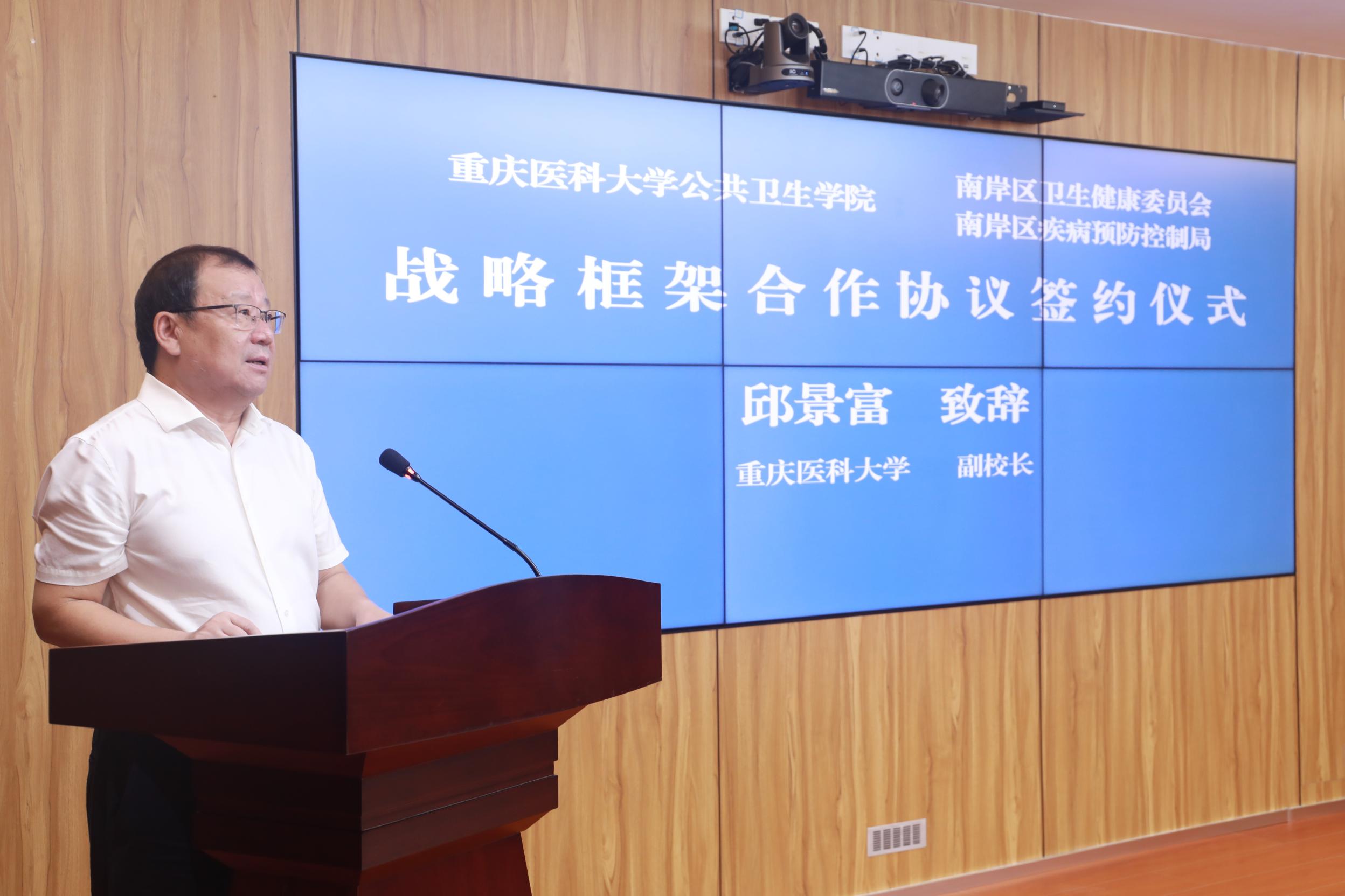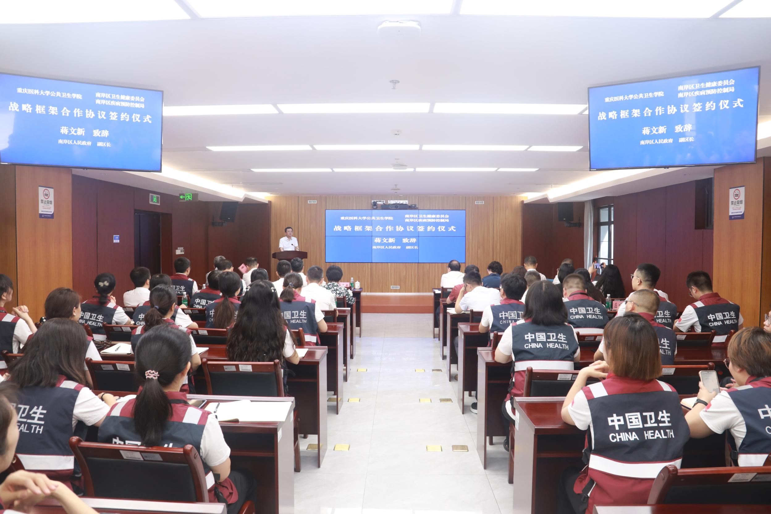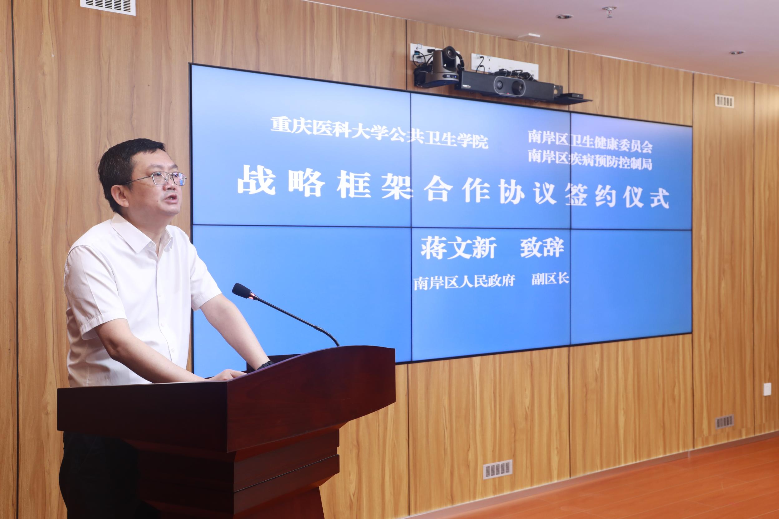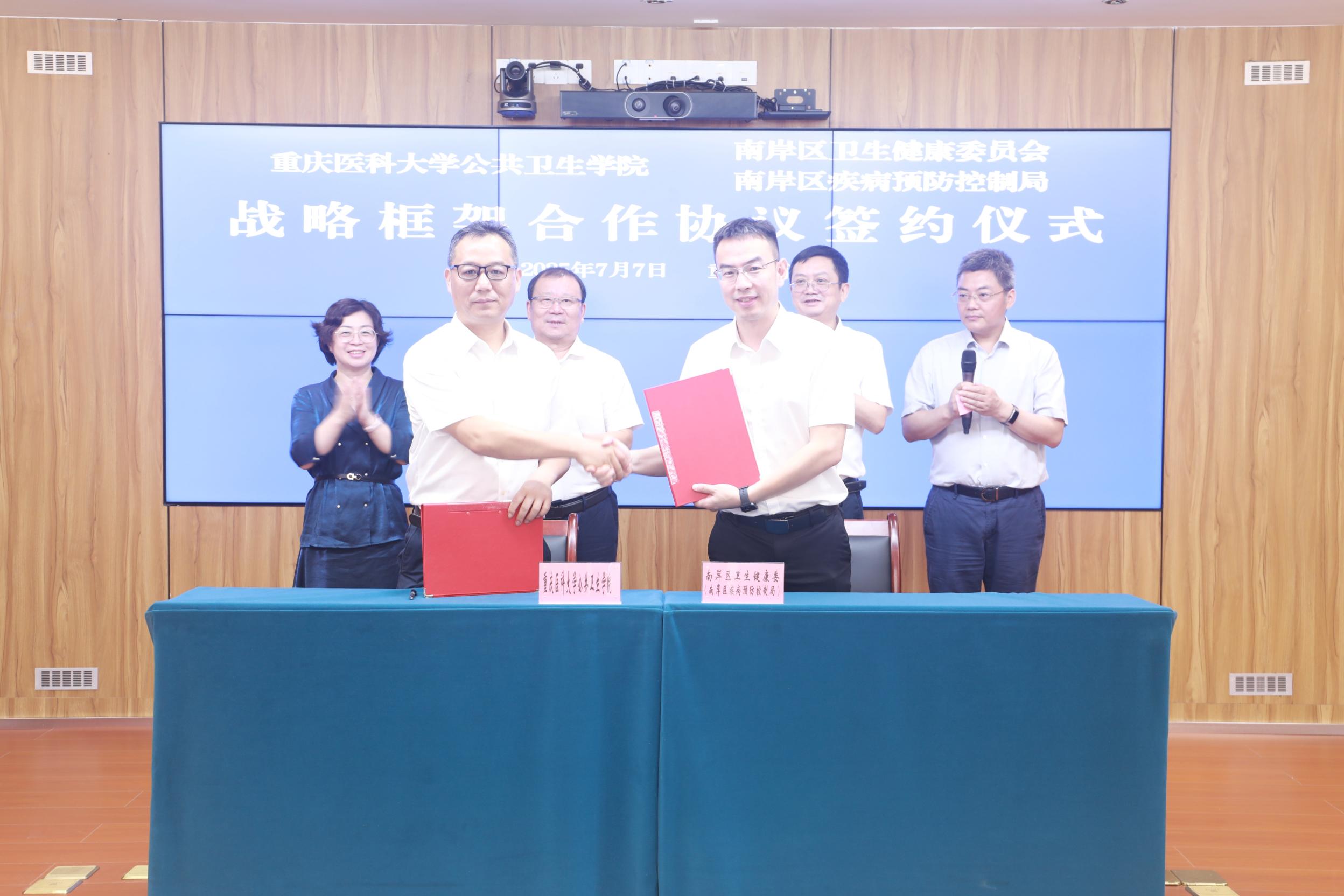 为进一步加强校地合作,推动学院专业发展,促进人才培养,7月7日,公共卫生学院与南岸区卫生健康委、区疾控局签订战略框架合作协议。南岸区政府副区长蒋文新,安博平台副校长邱景富,公共卫生学院党委副书记蒋祎,副院长尹定洪出席。签约仪式由南岸区卫生健康委主任曹仁主持。