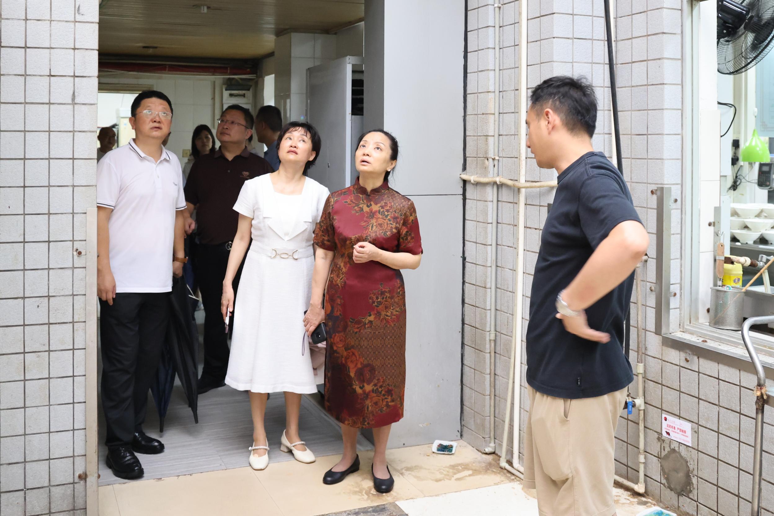 检查组着重检查了楼道应急疏散通道畅通情况、消防设施设备运行与维护状况、部分楼栋楼顶及墙体在近期大雨下的渗漏情况、食堂后厨食品加工流程、环境卫生、原料储存、燃气设备安全、油烟管道清洗记录以及防汛防灾措施等相关情况。葛萍指出,当前极端天气时有发生,必须时刻绷紧安全弦,以高标准严要求做好工作,务必确保雨天应急响应预案到位,保障学生居住环境安全舒适,严防各类安全事故,确保师生生命安全与校园和谐稳定,让师生安心离校、平安度假。